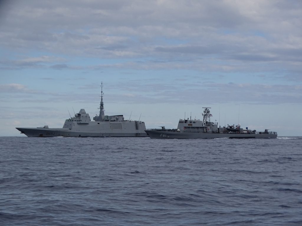 Με μια εικόνα της φρεγάτας «Provence» του Γαλλικού Ναυτικού δίπλα στο περιπολικό «Ιωαννίδης» της Κυπριακής Δημοκρατίας, το γαλλικό ΓΕΕΘΑ υπενθυμίζει τη συνεχή παρουσία της Γαλλίας στην Ανατολική Μεσόγειο και τους εξαιρετικούς δεσμούς της με την Κύπρο.