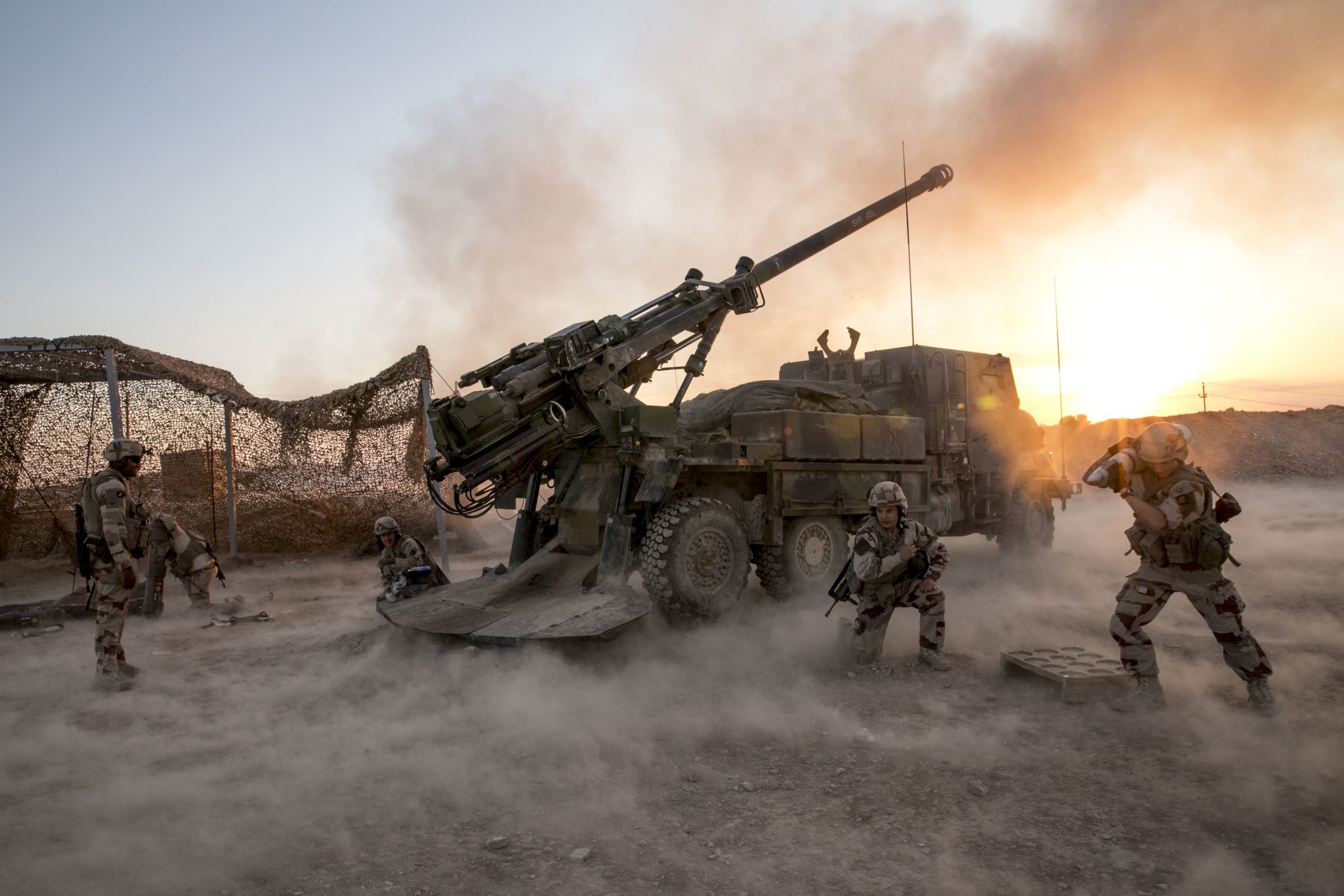 Πριν τη Ρωσική Εισβολή στην Ουκρανία, η Γαλλία διέθετε 76 πυροβόλα Caesar, τα οποία μειώθηκαν σε 58 με τη χορήγηση 18 στον Ουκρανικό Στρατό. Το Caesar αναπτύχθηκε από την Nexter Systems. Είναι αυτοκινούμενο πυροβόλο 155 χιλιοστών/52 διαμετρημάτων με ρυθμό βολής 6 βλημάτων ανά λεπτό. Το πυροβόλο έχει δυνατότητα ανύψωσης έως 72 μοίρες και εγκάρσια κίνηση 30 μοιρών. Το όλο σύστημα είναι εξοπλισμένο με ημιαυτόματο γέμισμα βλημάτων και έχει εύρος βολής από 4,5 έως 40 χιλιόμετρα.