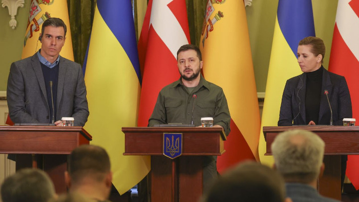 «Πρόκειται για τη σημαντικότερη αποστολή που γίνεται από την Ισπανία. Είναι υπερδιπλάσια απ’ όσα έχουμε στείλει έως σήμερα», δήλωσε κατά τη διάρκεια μιας συνέντευξης Τύπου που παραχώρησε από κοινού ο επικεφαλής της ισπανικής κυβέρνησης με τον Ουκρανό Πρόεδρο Βολοντίμιρ Ζελένσκι και την πρωθυπουργό της Δανίας Μέτε Φρεντέρικσεν.