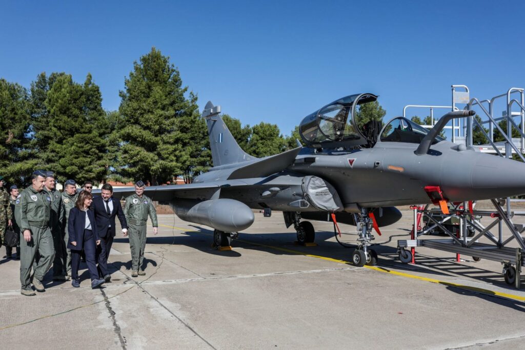 Η Πρόεδρος της Δημοκρατίας Κατερίνα Σακελλαροπούλου επισκέφθηκε σήμερα το πρωί την 114 Πτέρυγα Μάχης της Πολεμικής Αεροπορίας στην Τανάγρα και συγκεκριμένα την 332 Μοίρα, όπου είναι ενταγμένα τα αεροσκάφη Rafale. Την υποδέχθηκαν ο υφυπουργός Εθνικής Άμυνας Νίκος Χαρδαλιάς, ο αρχηγός του Γενικού Επιτελείου Αεροπορίας, αντιπτέραρχος Θεμιστοκλής Μπουρολιάς και ο αρχηγός Τακτικής Αεροπορίας, αντιπτέραρχος Γεώργιος Φασούλας.