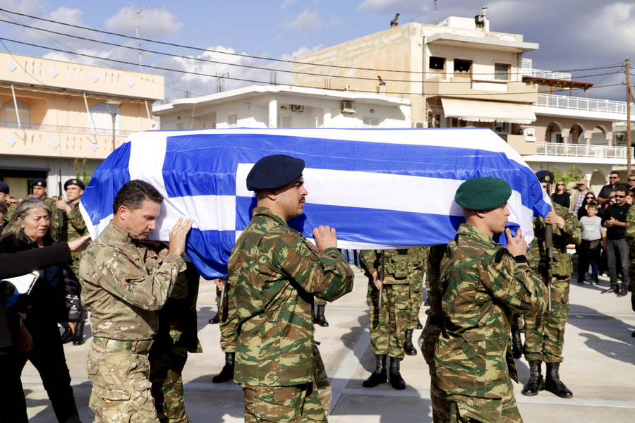 Σε κλίμα οδύνης και σπαραγμού, αποχαιρετούν σήμερα συγγενείς, φίλοι και συγχωριανοί, τον άτυχο 19χρονο ΕΠΟΠ στρατιώτη από το Τυμπάκι του Δήμου Φαιστού, που έχασε τη ζωή του μετά τον θανάσιμο τραυματισμό του, στη διάρκεια εκπαιδευτικής άσκησης στη Ρόδο. Πλήθος κόσμου παραβρίσκεται δίπλα στην οικογένεια του άτυχου 19χρονου, στον ιερό Ναό του Αγίου Τίτου που τελείται η νεκρώσιμος ακολουθία.