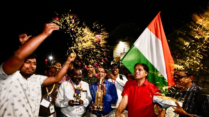 «Η Ινδία βρίσκεται στο φεγγάρι», είπε ο Σ. Σόμαναθ, επικεφαλής του Ινδικού Οργανισμού Διαστημικής Έρευνας (ISRO) καθώς το διαστημόπλοιο Chandrayaan-3 έφθασε την επιφάνεια της Σελήνης, καθιστώντας την Ινδία την τέταρτη χώρα που προσελήνωσε επιτυχώς ένα διαστημικό σκάφος στη Σελήνη μετά τις ΗΠΑ, την Κίνα και τη Ρωσία.
