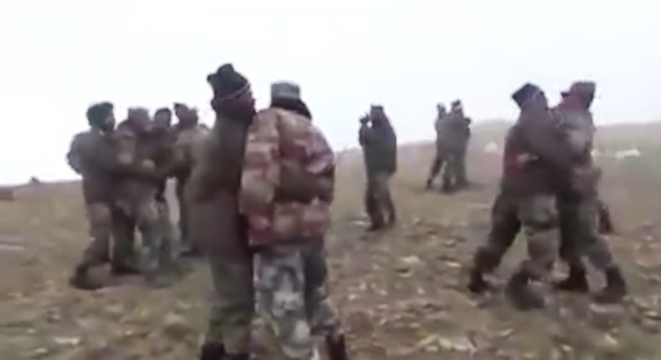 Στιγμιότυπο από βίντεο συγκρούσεων και απωθήσεων μεταξύ Ινδών και Κινέζων συνοριακών φρουρών στις ακατοίκητες συνοριακές περιοχές στα σύνορα των δύο χωρών στο Κασμίρ (πηγή: Facebook)
