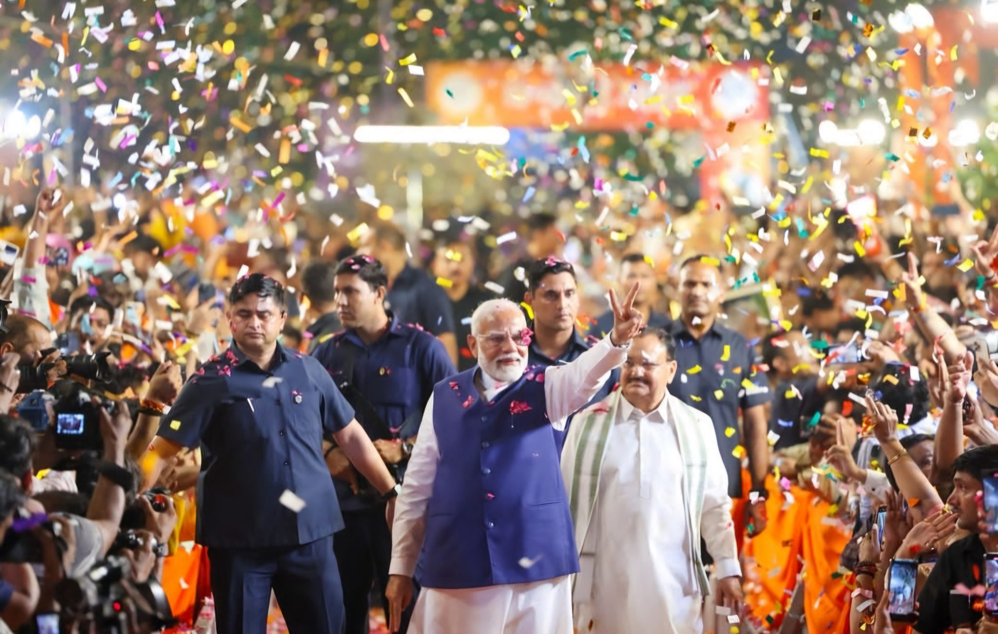 Η NDA εξασφάλισε 293 έδρες στη Λοκ Σάμπα, που αριθμεί συνολικά 543 έδρες, και η συμμαχία INDIA υπό το κεντρώο Κόμμα του Κογκρέσου του Ραχούλ Γκάντι εξασφάλισε τουλάχιστον 230, ξεπερνώντας τις προβλέψεις.