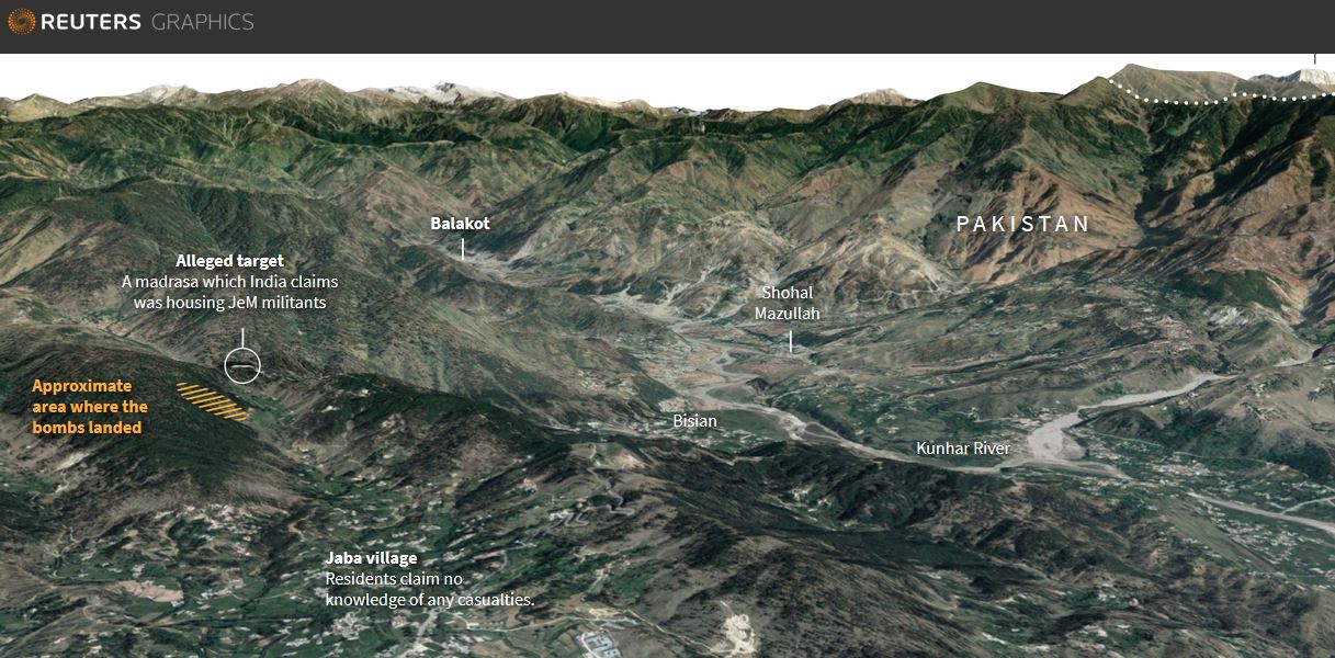 Σύμφωνα με το Reuters, δορυφορικές εικόνες υψηλής ευκρίνειας που τραβήχτηκαν μετά την ινδική επιδρομή, δείχνουν ένα θρησκευτικό σχολείο της Jaish-e-Mohammad που βρισκεται στο στρατόπεδο εκπαίδευσης και που υποτίθεται πως είχε καταστραφεί, να βρίσκεται ακόμη στη θέση του.