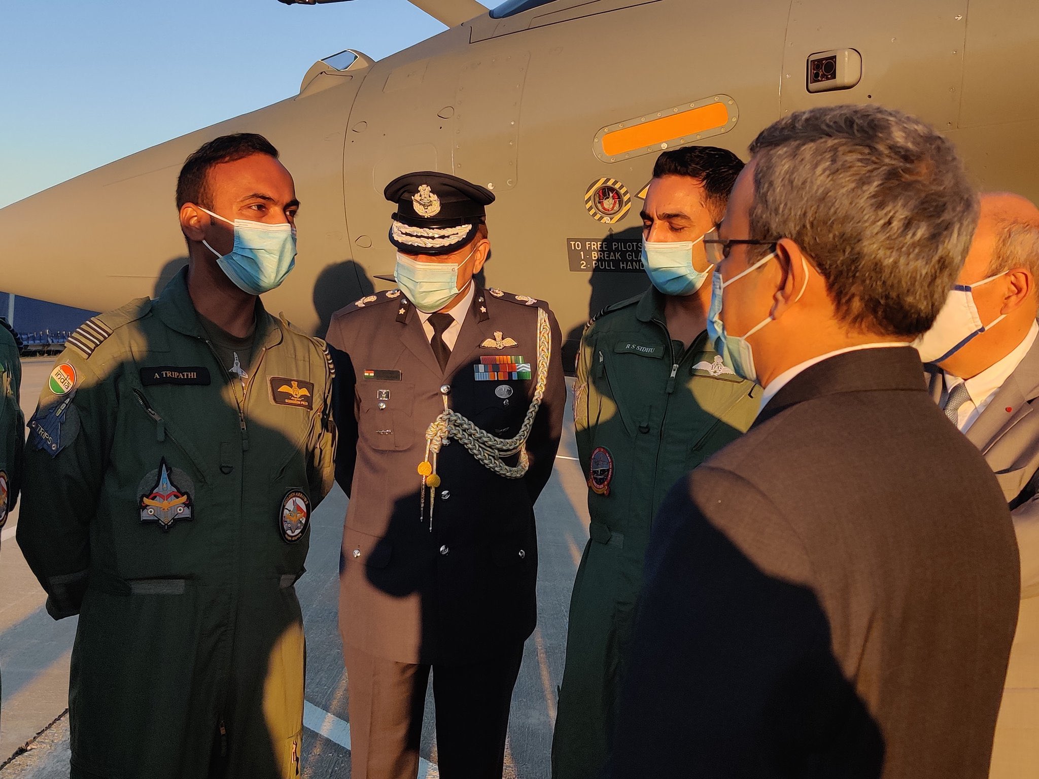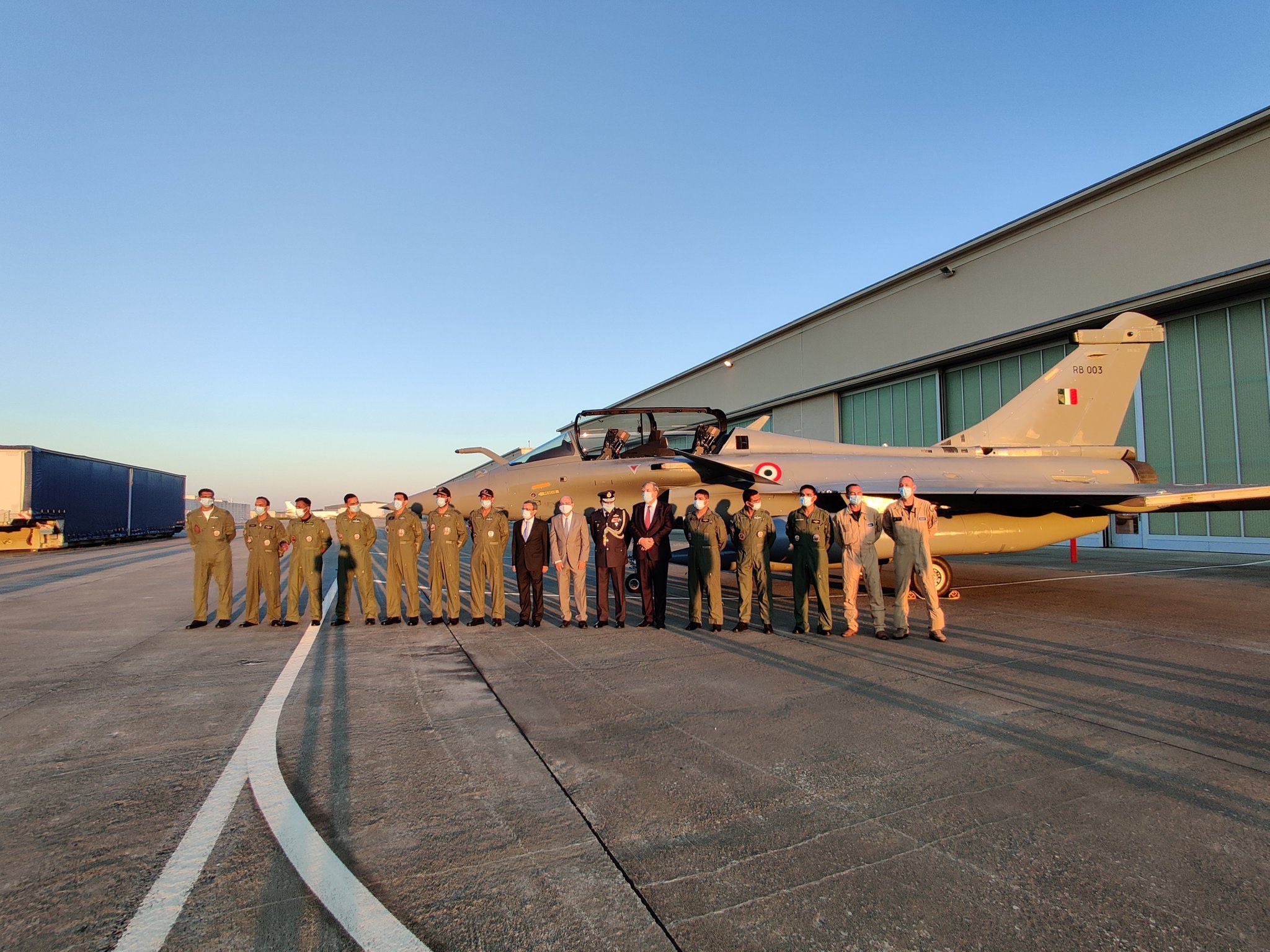 First pictures of India-bound IAF Rafale team with one of their birds at Istres. They’re in the air now. pic.twitter.com/iwLUAqYfUx