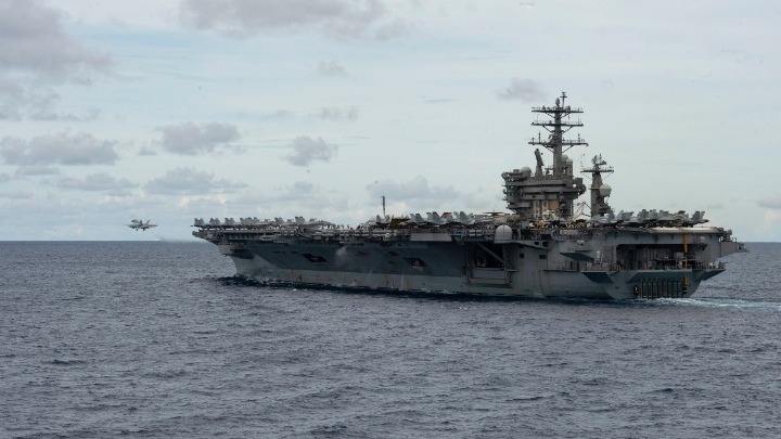 Το αμερικανικό αεροπλανοφόρο βρισκόταν τον Σεπτέμβριο στα Στενά του Χορμούζ, στρατηγικό δίαυλο τον οποίο το Ιράν απειλεί συστηματικά ότι θα κλείσει, πριν κατευθυνθεί προς τον Ειρηνικό.