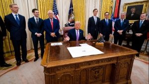 Τα ΗΑΕ και το Ισραήλ συμφώνησαν χθες Πέμπτη να εξομαλύνουν τις σχέσεις τους, στο πλαίσιο μιας ιστορικής συμφωνίας που διαπραγματεύθηκαν οι Ηνωμένες Πολιτείες και η οποία, όταν υπογραφεί, θα καταστήσει το Αμπού Ντάμπι μόλις την τρίτη αραβική χώρα που ακολουθεί αυτόν τον δρόμο από την ίδρυση του εβραϊκού κράτους, μετά την Αίγυπτο (1979) και την Ιορδανία (1994).