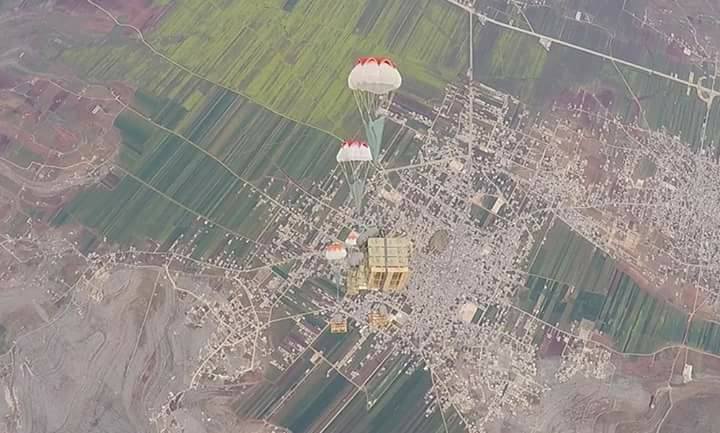 Οι παρακάτω εικόνες προέρχονται από προχθεσινή ρίψη “ανθρωπιστικής βοήθειας” στις Fuah και Kefraya στη Συρία.