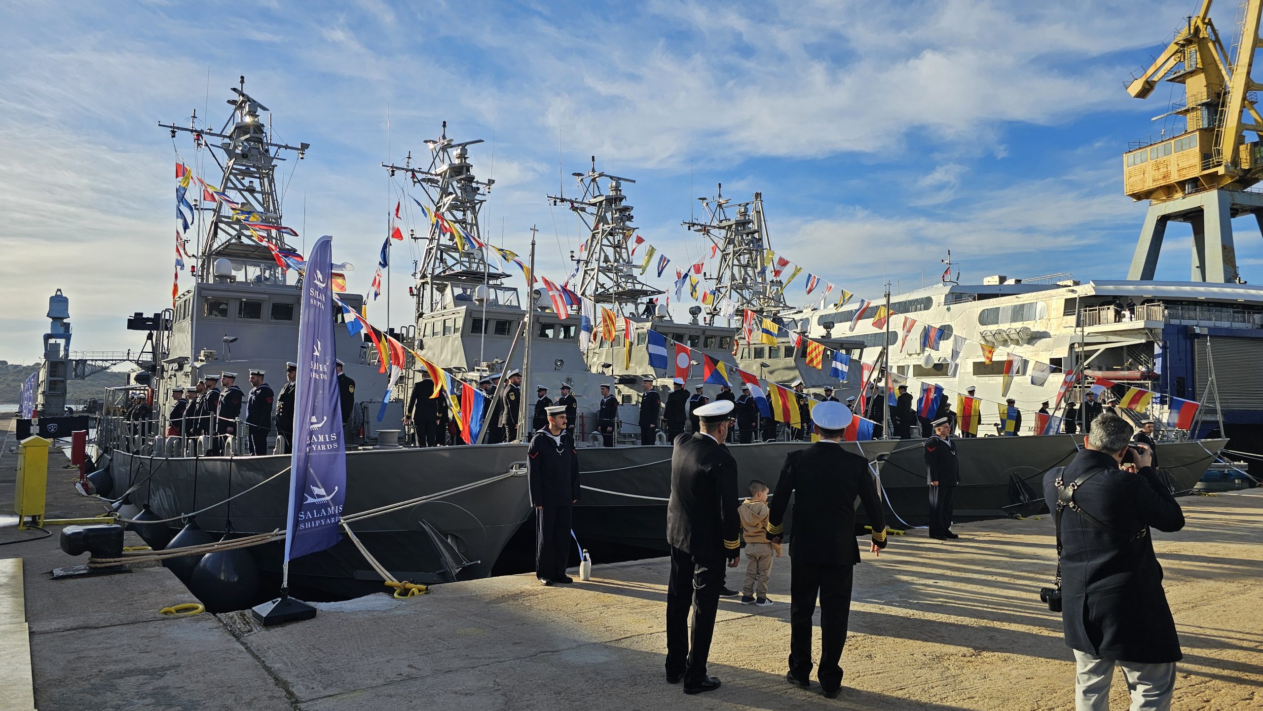 Η σημερινή τελετή ονοματοδοσίας και Ύψωσης Σημαίας των 4 παράκτιων περιπολικών κλάσης Island (ΥΠΟΚΕΛΕΥΣΤΗΣ Β΄ ΜΑΝΤΟΥΒΑΛΟΣ, ΥΠΟΚΕΛΕΥΣΤΗΣ Α΄ ΓΑΛΑΝΗΣ, ΥΠΟΚΕΛΕΥΣΤΗΣ Β΄ ΛΙΑΣΚΟΣ και ΑΡΧΙΚΕΛΕΥΣΤΗΣ (HN/AY) ΓΙΑΛΟΨΟΣ), σηματοδοτεί, την εντός χρονοδιαγράμματος και προϋπολογισμού, ολοκλήρωση των εργασιών ενεργοποίησης (reactivation) και αναβάθμισης από τα Ναυπηγεία Σαλαμίνας και την εντολέα τους V.E.S.(Virginia Electronic Systems) υπό την επιστασία της Αμερικανικής Ακτοφυλακής και του Πολεμικού μας Ναυτικού.