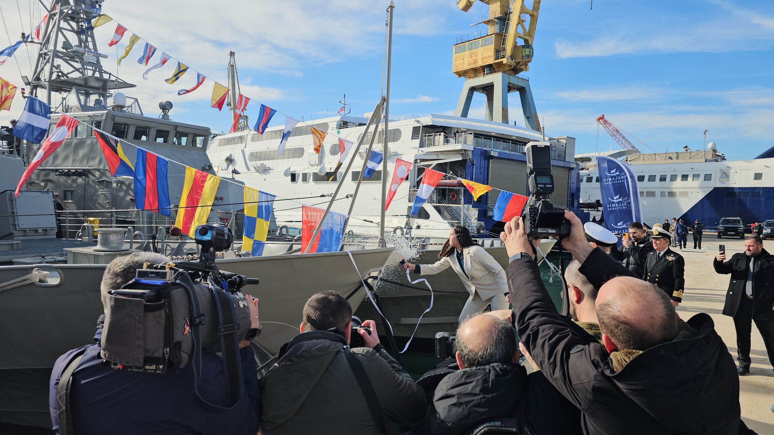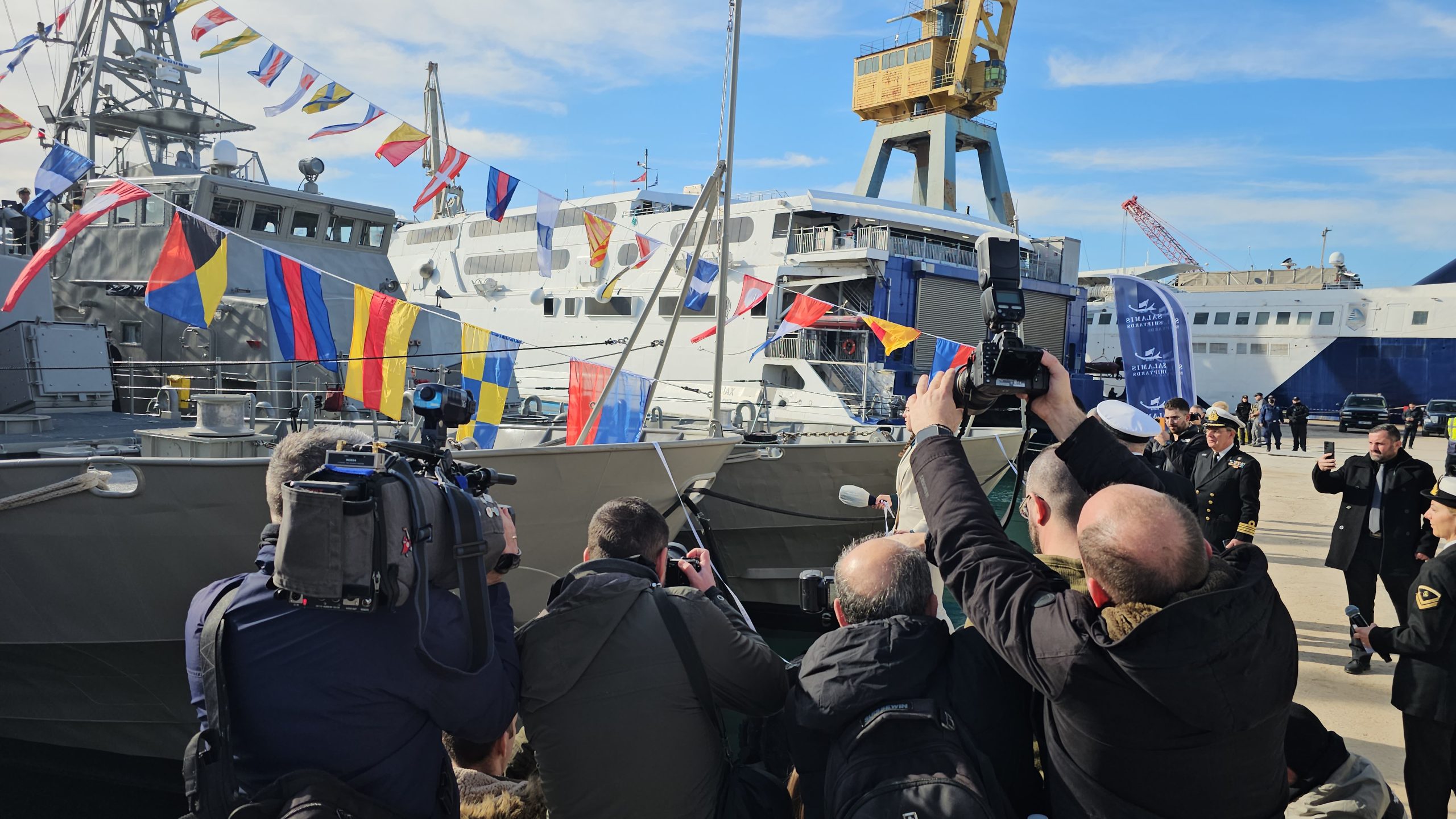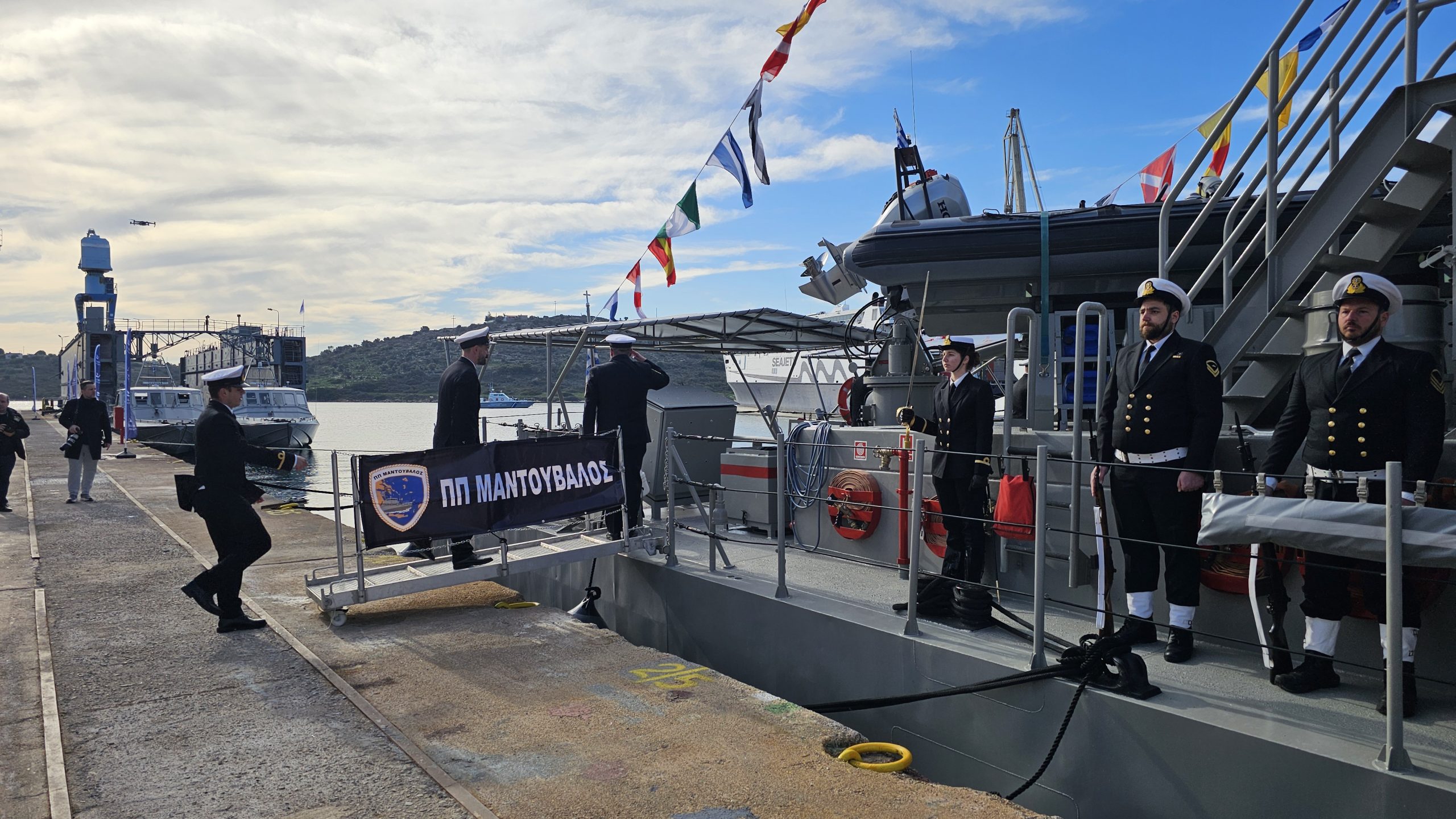 Η σημερινή τελετή ονοματοδοσίας και Ύψωσης Σημαίας των 4 παράκτιων περιπολικών κλάσης Island (ΥΠΟΚΕΛΕΥΣΤΗΣ Β΄ ΜΑΝΤΟΥΒΑΛΟΣ, ΥΠΟΚΕΛΕΥΣΤΗΣ Α΄ ΓΑΛΑΝΗΣ, ΥΠΟΚΕΛΕΥΣΤΗΣ Β΄ ΛΙΑΣΚΟΣ και ΑΡΧΙΚΕΛΕΥΣΤΗΣ (HN/AY) ΓΙΑΛΟΨΟΣ), σηματοδοτεί, την εντός χρονοδιαγράμματος και προϋπολογισμού, ολοκλήρωση των εργασιών ενεργοποίησης (reactivation) και αναβάθμισης από τα Ναυπηγεία Σαλαμίνας και την εντολέα τους V.E.S.(Virginia Electronic Systems) υπό την επιστασία της Αμερικανικής Ακτοφυλακής και του Πολεμικού μας Ναυτικού.