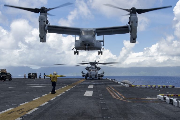Το V-22 Osprey παράγεται από τη Boeing, πραγματοποίησε την πρώτη του πτήση το 1989 και εισήλθε σε αμερικανική υπηρεσία το 2007. Το V-22 Osprey μπορεί να μεταφέρει 24 με 32 στρατιώτες σε απόσταση 722km. Εκτός από τις ΗΠΑ, ο τύπος έχει αποκτηθεί από την Ιαπωνία.