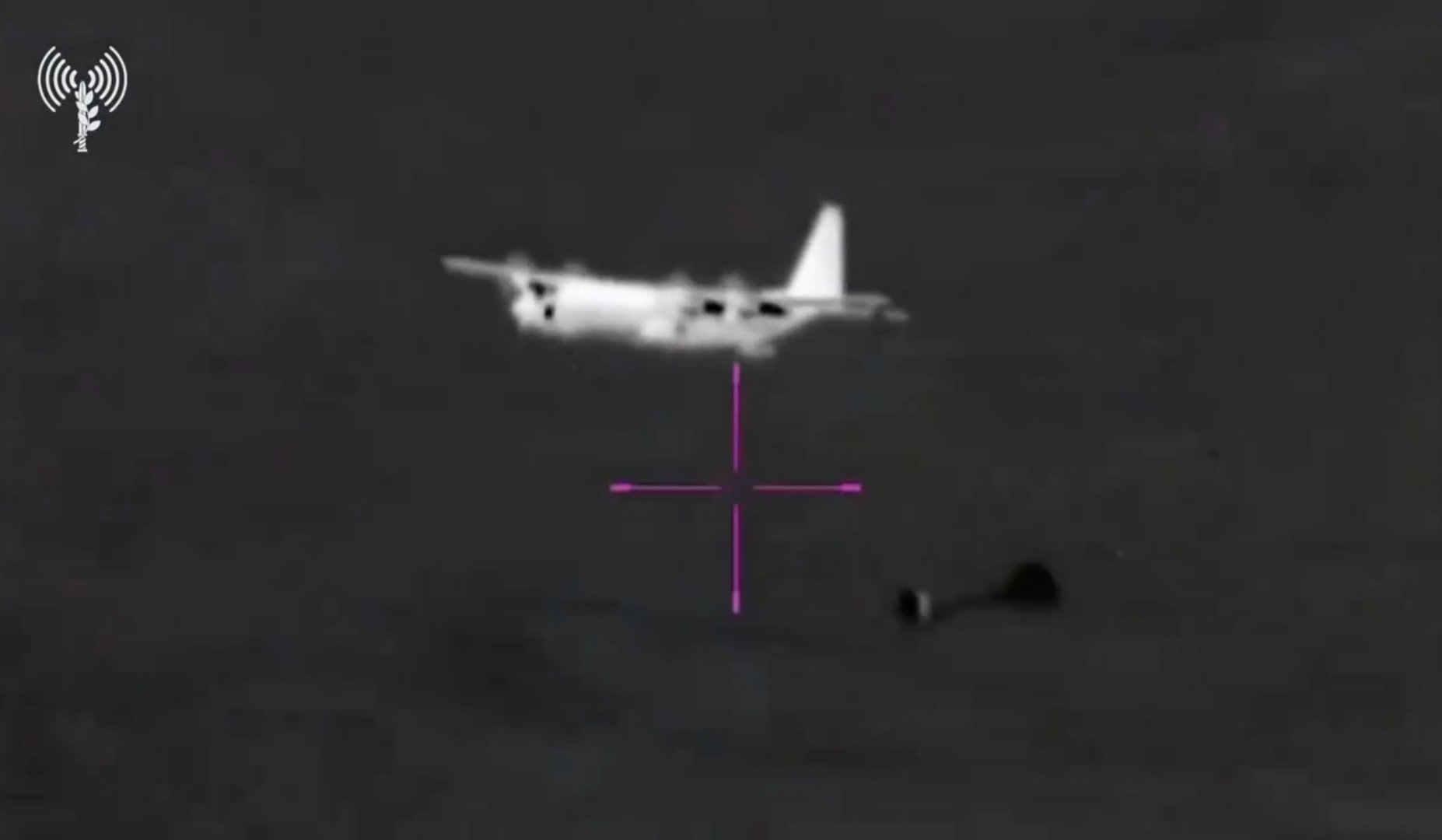 Βίντεο που αποδέσμευσαν οι IDF δείχνει C-130J Shamson της 103ης Μοίρας «Elephants» της Ισραηλινής Αεροπορίας να πραγματοποιούν ρίψη εφοδίων (7 τόνους) σε μονάδες που μάχονται στην Khan Yunis.