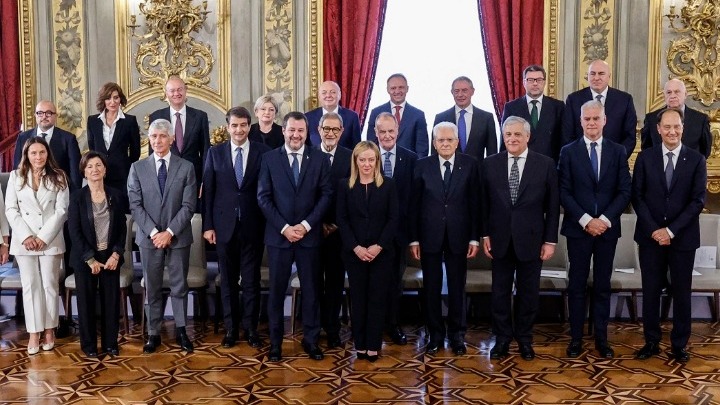 Η κυβέρνηση της Τζόρτζια Μελόνι ορκίσθηκε πριν από λίγο στο προεδρικό μέγαρο Κυρινάλιο. Η κυβερνητική ομάδα απαρτίζεται από την πρωθυπουργό, είκοσι τέσσερις υπουργούς και έναν υφυπουργό παρά τον πρωθυπουργό. Συνολικά, έξι υπουργοί είναι γυναίκες. Εννέα ανήκουν στα Αδέλφια της Ιταλίας, πέντε στην Λέγκα, πέντε στην Φόρτσα Ιτάλια και πέντε είναι τεχνοκράτες.