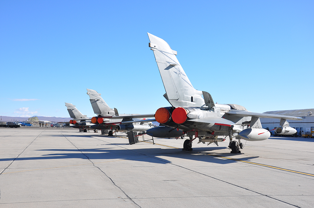 Τέσσερα εξειδικευμένα αεροσκάφη καταστολής της εχθρικής αεράμυνας (SEAD) Tornado ECR της Ιταλικής Αεροπορίας βρίσκονται στο πεδίο βολής China Lake στις ΗΠΑ, επισημαίνει το «The Aviationist».