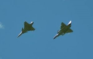 Ένα από τα αξιοσημείωτα στιγμιότυπα της άσκησης αυτής, ήταν ένας σχηματισμός Gripen και J-10A όπου διακρίνονται καθαρά τα μεγέθη κι οι γραμμές των δυο μαχητικών.