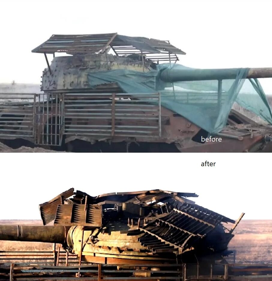 Η μεγάλη έκπληξη των ασκήσεων, όμως, ήταν πως οι Ουκρανοί χρησιμοποίησαν ως στόχους άρματα Τ-72 που είχαν τροποποιηθεί για να φέρουν τη χαρακτηριστική πρόσθετη θωράκιση “πλέγματος” (slat armour), ανάλογη με αυτή που χρησιμοποιούν σύγχρονα ρωσικά άρματα και τεθωρακισμένα για προστασία από αντιαρματικές ρουκέτες.