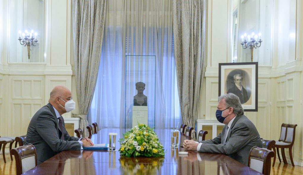 Συνάντηση ΥΠΕΞ @NikosDendias με Γ.Κατρούγκαλο @gkatr στο Υπ.Εξωτερικών στο πλαίσιο ενημέρωσης εκπροσώπων κοινοβουλευτικών κομμάτων για τις τελευταίες εξελίξεις στο Κυπριακό υπό το φως των τουρκικών παράνομων εξαγγελιών για τα Βαρώσια pic.twitter.com/bjyCtC5AMt