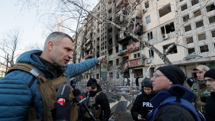“Ως δήμαρχος του Κιέβου, σας υπόσχομαι ένα πράγμα: ποτέ οι Ρώσοι δεν θα μπουν στο Κίεβο”, είπε ο πρώην παγκόσμιος πρωταθλητής πυγμαχίας, Βιτάλι Κλίτσκο, ενώπιον του Συμβουλίου της Ευρώπης και ενώ τα ρωσικά στρατεύματα προσπαθούν να περικυκλώσουν την πόλη του. Η δήλωση του έγινε κατά τη διάρκεια τηλεδιάσκεψης με το Κογκρέσο των τοπικών και περιφερειακών αρχών, τη συνέλευση του Συμβουλίου της Ευρώπης που εκπροσωπεί τους τοπικούς αιρετούς και έχει την έδρα του στο Στρασβούργο.