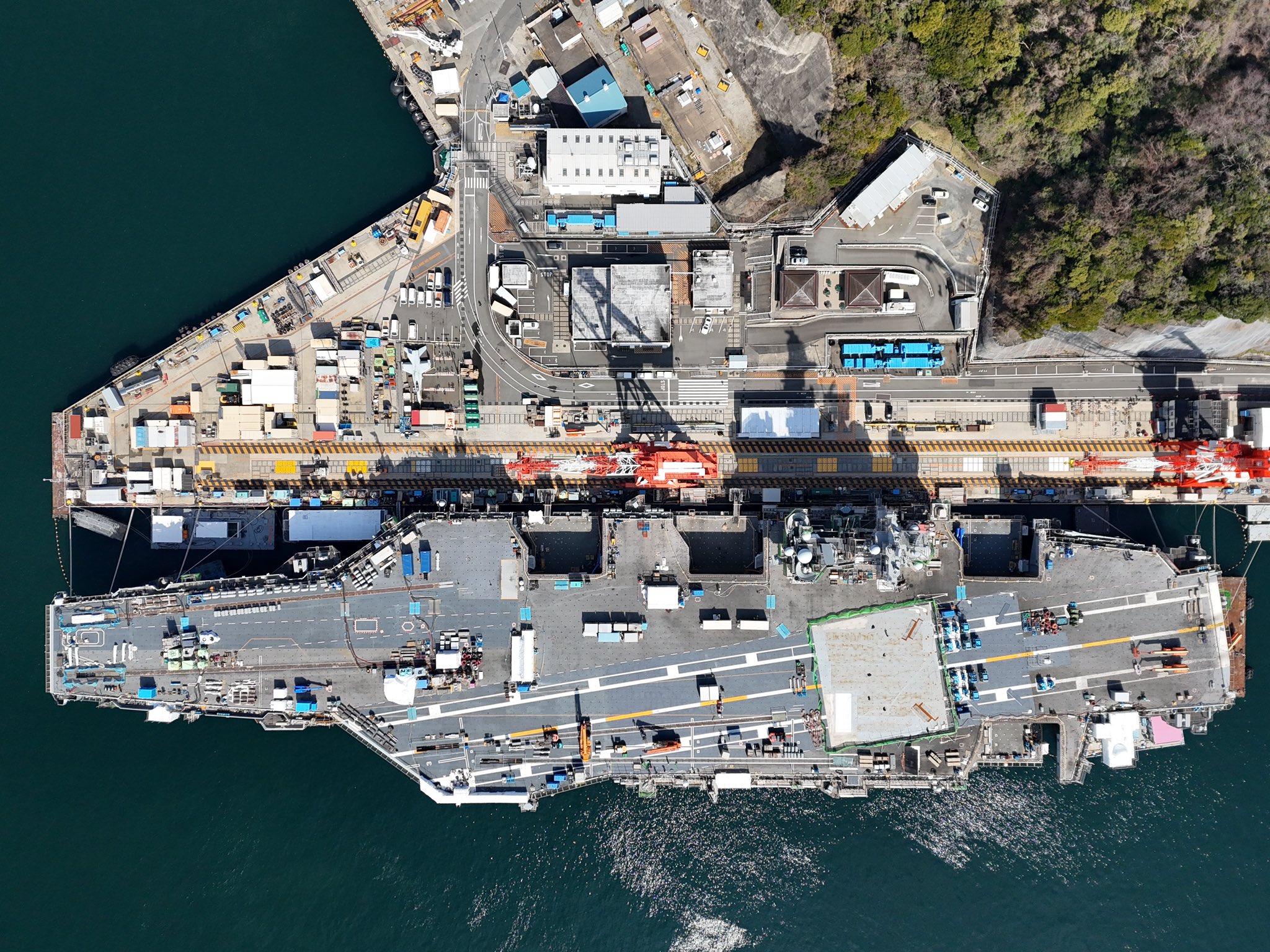 Στο παραπάνω βίντεο φαίνεται το USS Ronald R. Reagan δεμένο στη βάση με πολλές εργασίες να γίνονται στο κατάστρωμα του, ενώ στο παρακάτω βίντεο είναι το JS Izumo, με εδώ το πέρασμα του drone να γίνεται σε ακόμη χαμηλότερο ύψος και βέβαια… μέρα μεσημέρι!