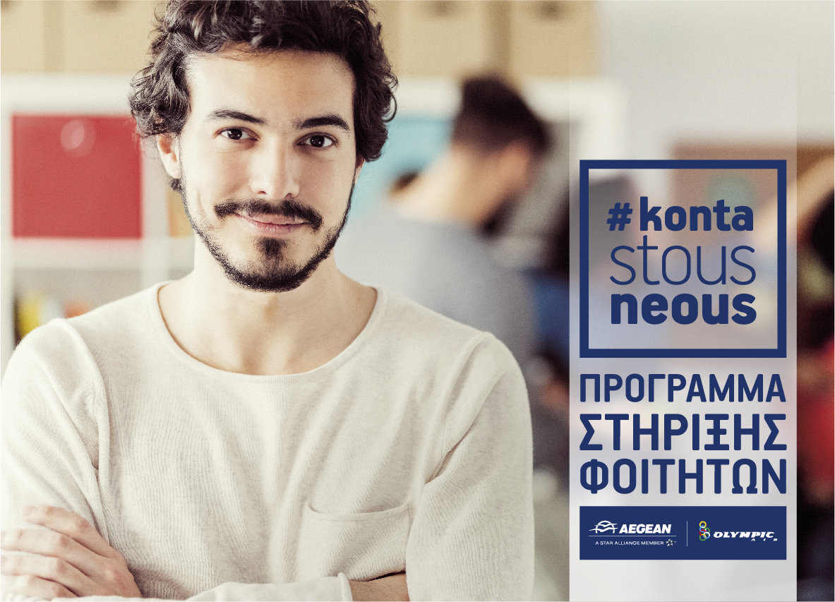 H AEGEAN για 6η συνεχή χρονιά είναι δίπλα στην ελληνική οικογένεια και φέρνει επιπλέον 250 φοιτητές πιο κοντά στα αγαπημένα τους πρόσωπα. Και την νέα ακαδημαϊκή χρονιά 2018–2019 η εταιρία υλοποιεί το Πρόγραμμα Στήριξης Φοιτητών «Κοντά στους Νέους», το οποίο εγκαινιάστηκε κατά την ακαδημαϊκή χρονιά 2013 – 2014. Η συγκεκριμένη πρωτοβουλία απευθύνεται σε όλους τους νεοεισαχθέντες φοιτητές, που φοιτούν σε ΑΕΙ μακριά από τον τόπο κατοικίας τους και αντιμετωπίζουν την ανάγκη μετακίνησης.