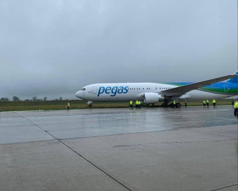 Ikar Pegasfly Boeing 767-300 (VP-BMC, built 1999) ran off the right side of runway 19 while landing Simferopol Airport (UKFF), Crimea coming to land on flight #EO123 from Moscow-SVO with 284 onboard. The nose and right maingear ended on soft ground. @ntvruhttps://t.co/neETm1xwaG pic.twitter.com/sZdP2cd2qo