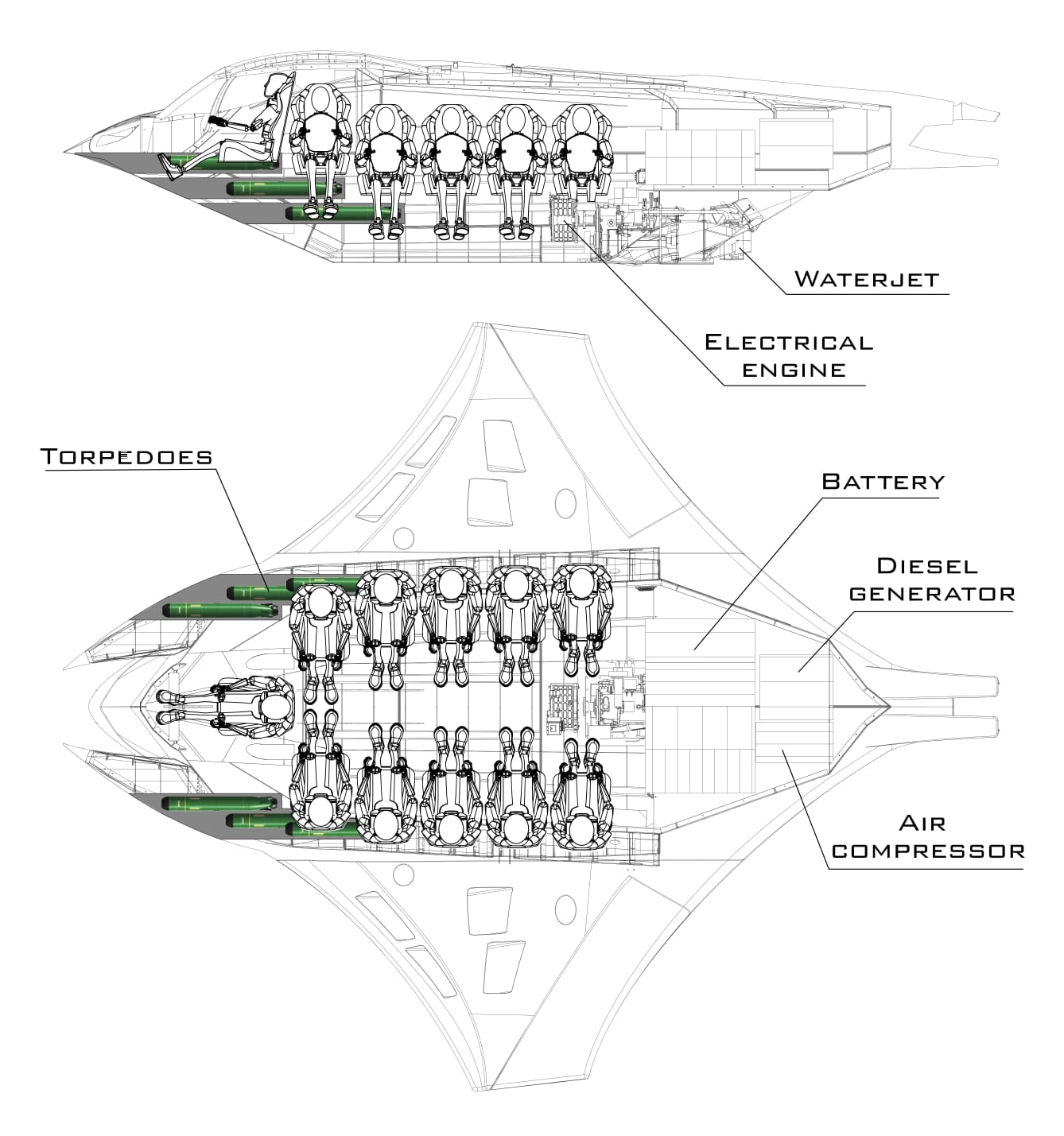 Το σκάφος είναι από συνθετικά υλικά και έχει υβριδική πρόωση με ντηζελοκινητήρα που φορτίζει μπαταρίες. Μπορεί να λειτουργήσει για 54 ώρες, ή για 18 με μόνο χρήση μπαταριών, ενώ το απόθεμα αέρα που έχει είναι για 36 ώρες. Διαθέτει περισκόπιο, κάμερες παρατήρησης, θάλαμο συμπίεσης για υποβρύχια έξοδο δυτών, ενώ μπορεί να καταδυθεί σε πάνω από 100 μέτρα βάθος.