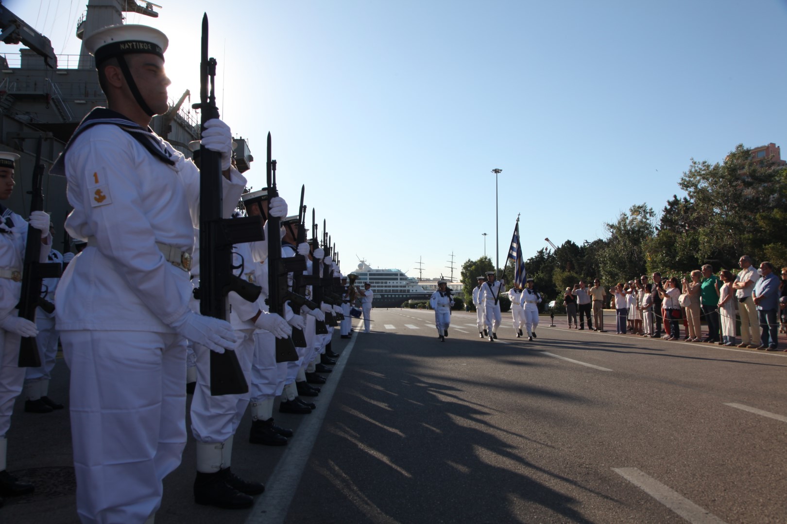 Στην τελετή παρέστησαν ο υπαρχηγός ΓΕΝ υποναύαρχος Γεώργιος Καμπουράκης ΠΝ, ως εκπρόσωπος του αρχηγού ΓΕΝ, o διοικητής ΣΝΔ Υποναύαρχος Ιωάννης Πάττας ΠΝ, ο διοικητής Φρεγατών αρχιπλοίαρχος Γεώργιος Φλώρος ΠΝ, καθώς και συγγενείς και φίλοι των Ναυτικών Δοκίμων.