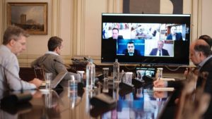 Σύσκεψη μέσω τηλεδιάσκεψης υπό τον Πρωθυπουργό Κυριάκο Μητσοτάκη για το Πρόγραμμα «Βοήθεια στο Σπίτι» και τη στήριξη ευάλωτων πολιτών πραγματοποιήθηκε σήμερα, με τη συμμετοχή του υπουργού Εσωτερικών Τάκη Θεοδωρικάκου, του Προέδρου της Ένωσης Περιφερειών Ελλάδας Απόστολου Τζιτζικώστα και του Προέδρου της Κεντρικής Ένωσης Δήμων Ελλάδας, Δημήτρη Παπαστεργίου.