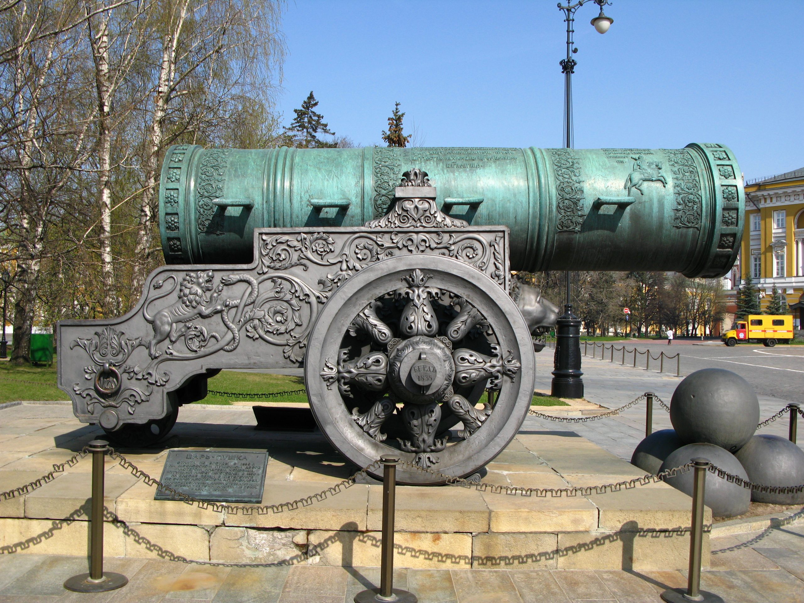 Ένα εξαιρετικό παράδειγμα ήταν το εντυπωσιακό κανόνι Tsar των 890 χλστ. που έφτιαξαν οι Ρώσοι γύρω στο 1586. Ζύγιζε 39 τόνους και μπορούσε να εκτοξεύσει μπάλες των 771 κιλών εκάστη. Το κύριο υλικό κατασκευής του ήταν ο μπρούτζος και αποτελούσε στην πραγματικότητα ένα έργο τέχνης με λεπτεπίλεπτες ανάγλυφες διακοσμήσεις στη βάση, το σωλήνα πυροδοτήσεως, ακόμη και τους τροχούς. Το φοβερό μέγεθός του το καθιστούσε κάπως άχρηστο σε συνθήκες πραγματικής μάχης, όπως ακριβώς συνέβη και με το «Schwerer Gustav». Ήταν περισσότερο όπλο κύρους παρά χρηστό πολεμικό εξάρτημα. Σήμερα εκτίθεται έξω από το Κρεμλίνο μαζί με μερικές διακοσμητικές μπάλες εκτοξεύσεως.
