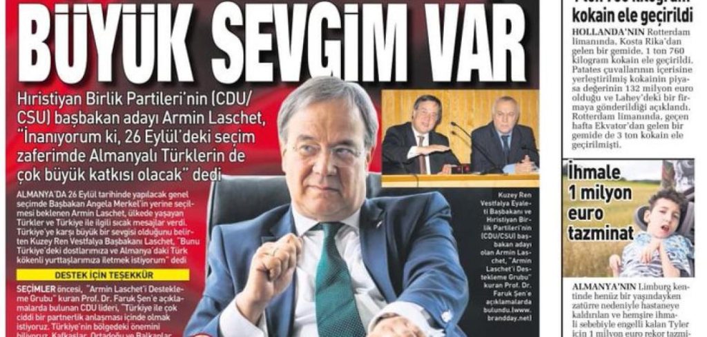 “Έχω μεγάλη αγάπη για την Τουρκία” ανέφερε ο Άρμιν Λάσετ, Γερμανός πολιτικός και πρωθυπουργός του ομόσπονδου κρατιδίου της Βόρειας Ρηνανίας-Βεστφαλίας, στην φιλοκυβερνητική Sabah στις 27 Ιουλίου. Μόνο που η “συνέντευξη” δεν πραγματοποιήθηκε ποτέ.