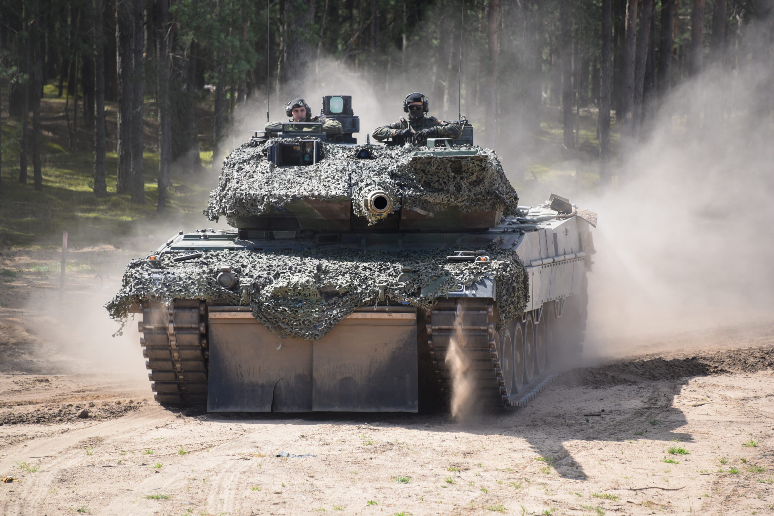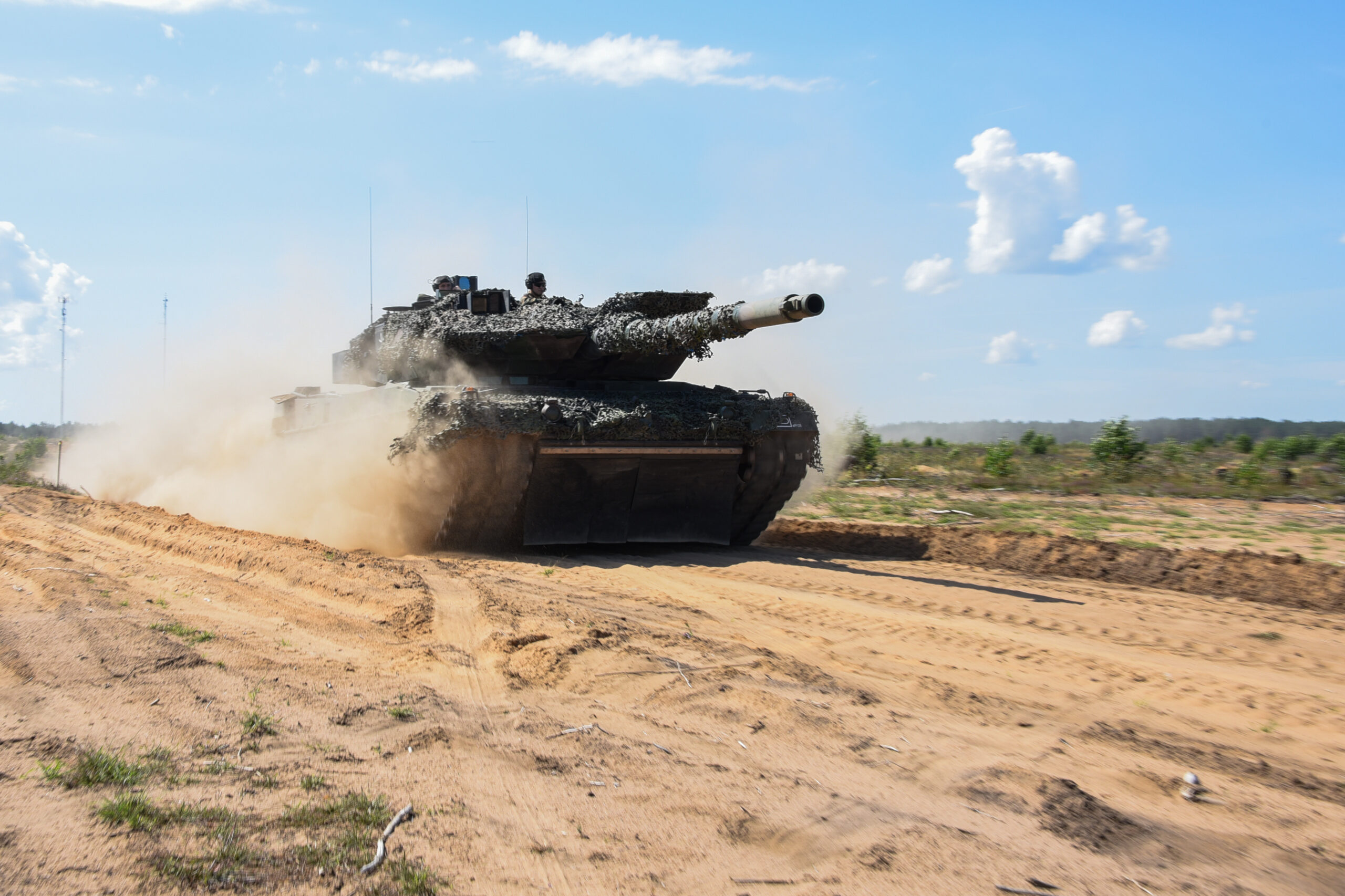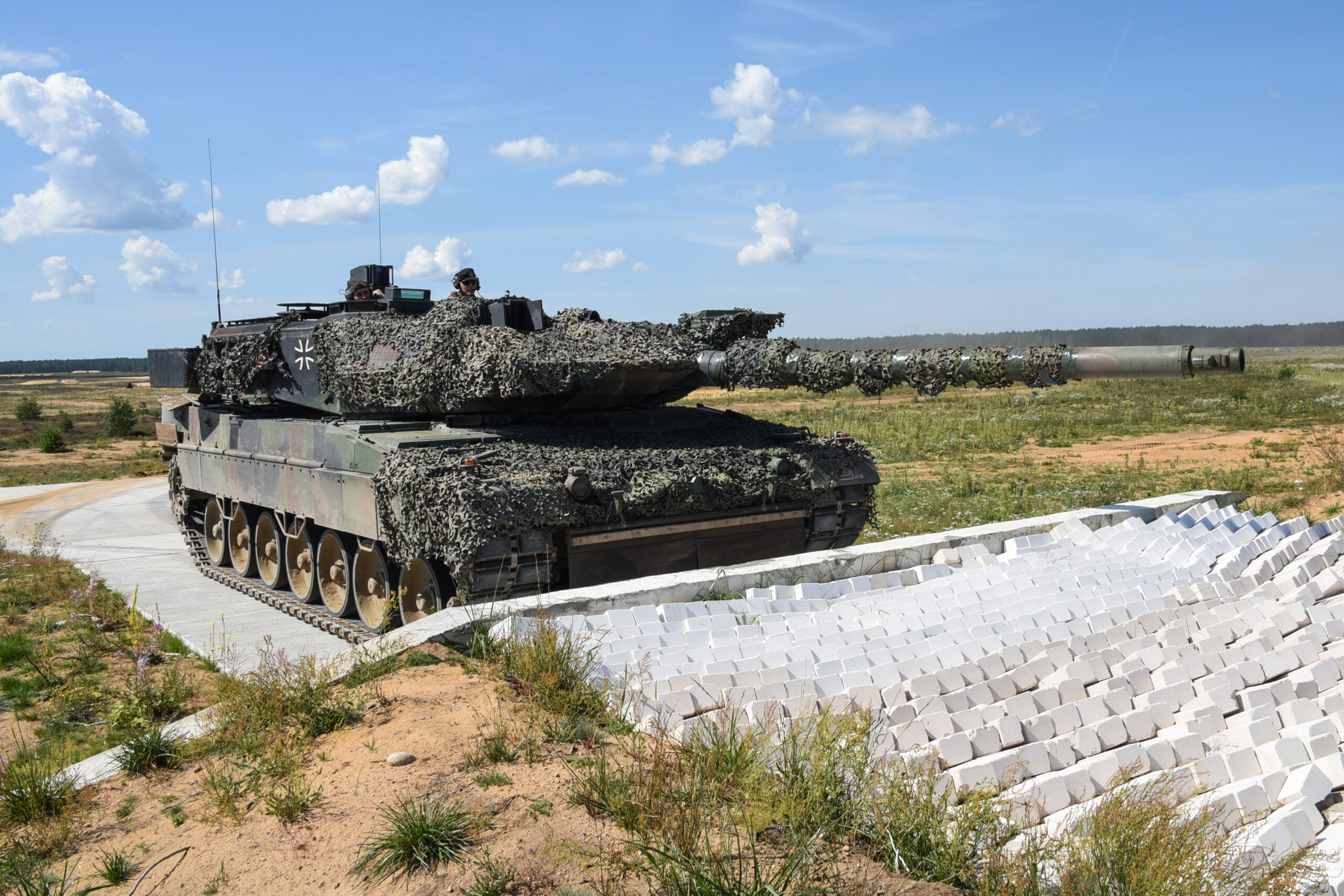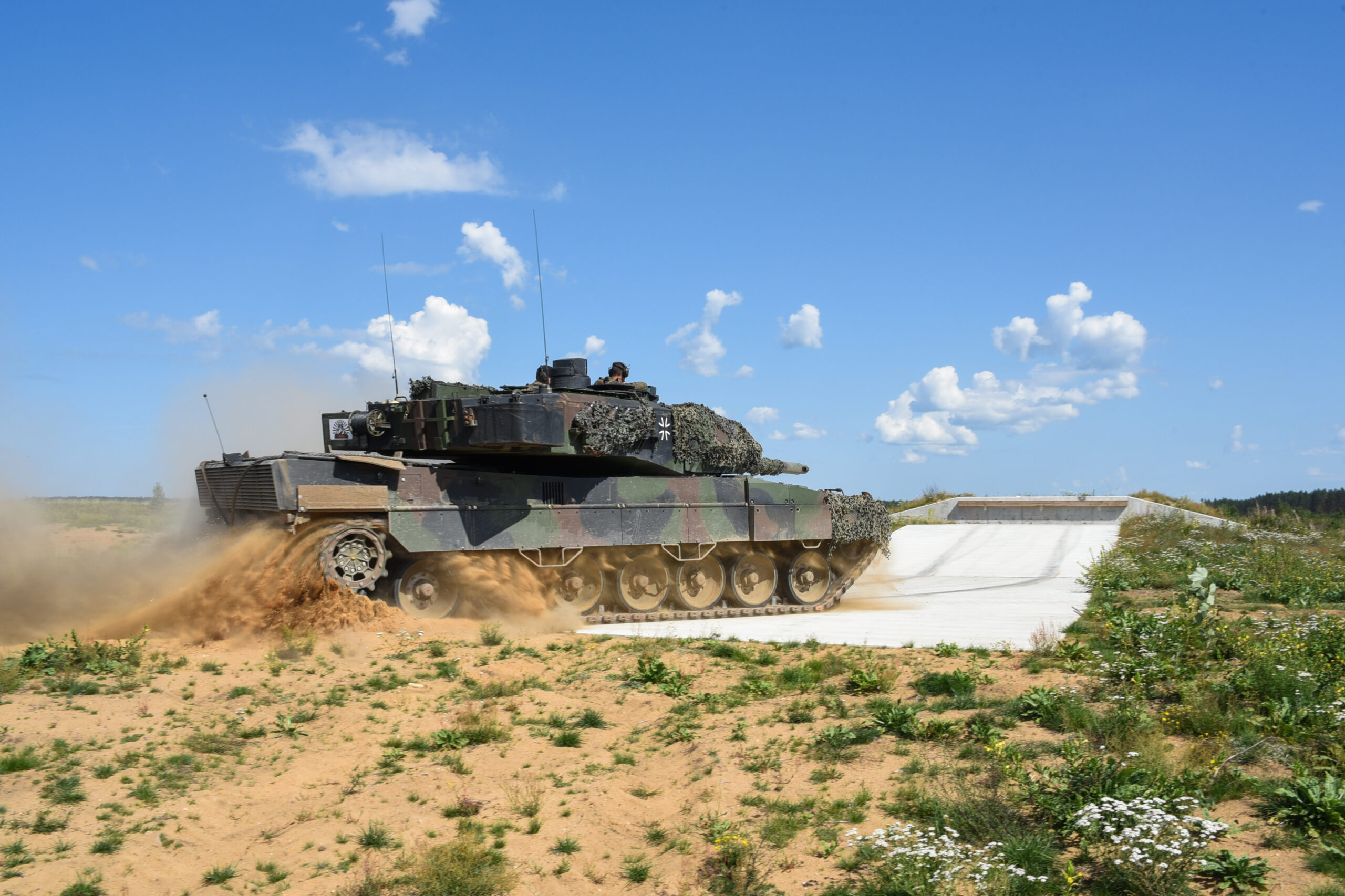 German Army soldiers maneuver a Leopard 2 main battle tank through a tank range at Pabrade, Lithuania, Aug. 09, 2018. The U.S. Army’s Training Support Activity Europe (TSAE) conducted a final inspection of the newly built facility as TSAE is assisting NATO allies in eastern Europe develop their range and training infrastructures.