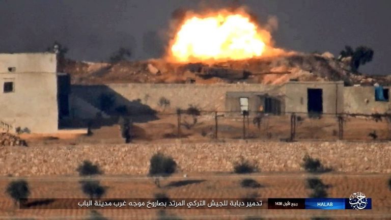 Προσβολή δυο Leo2 με το πρώτο βλήμα κατά του άρματος κάτω (με κάποιες ζημιές ορατές)