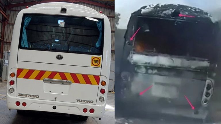 - Περνάμε στην ύποπτη τρύπα νούμερο 3. Το Yutong F7 εκεί έχει το λογότυπο του μοντέλου, που στη θολή φωτογραφία του καμένου, φαίνεται μια σκιά. Μήπως λοιπόν είναι το λογότυπο, μεταλλικό ή πλαστικό, που έχει λιώσει από την πυρκαγιά; Ίσως βλέπουμε την υποδοχή στερέωσης του;