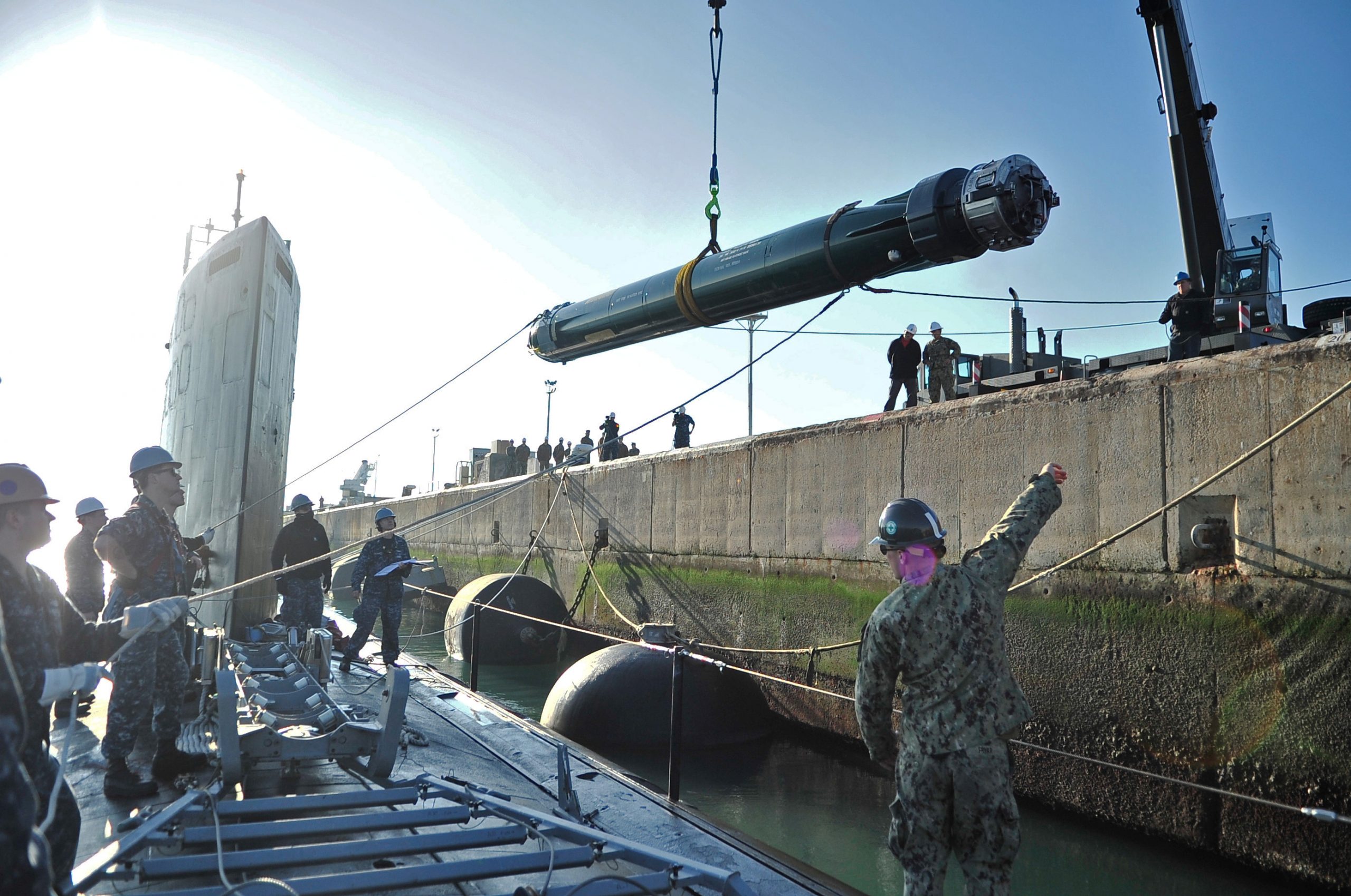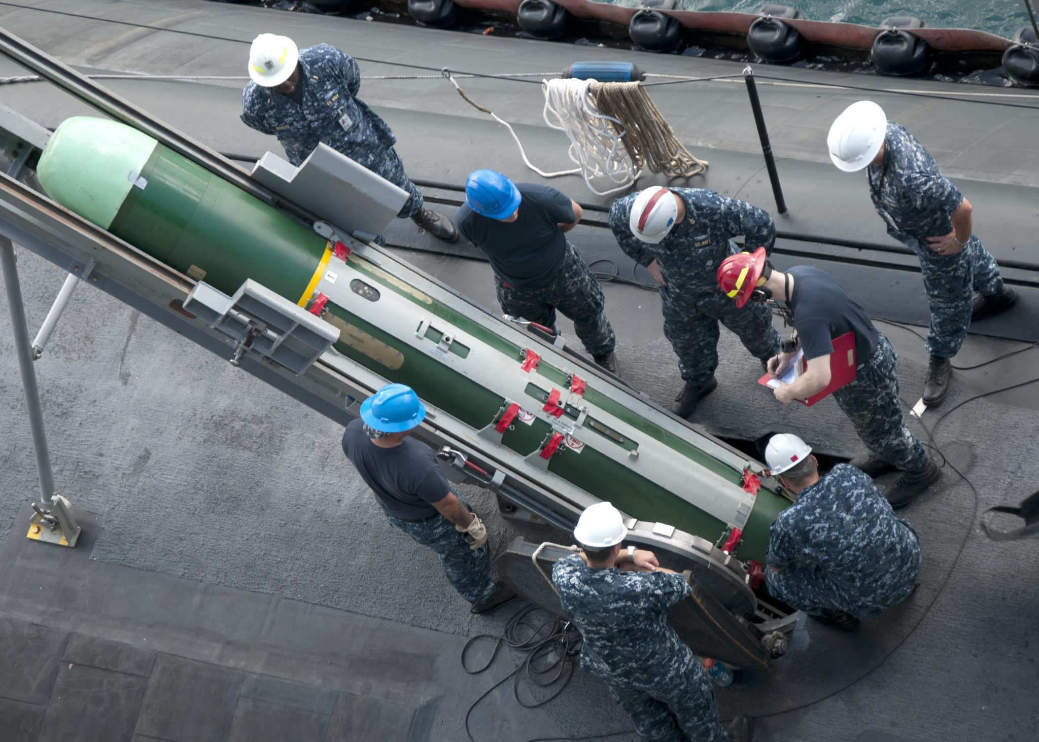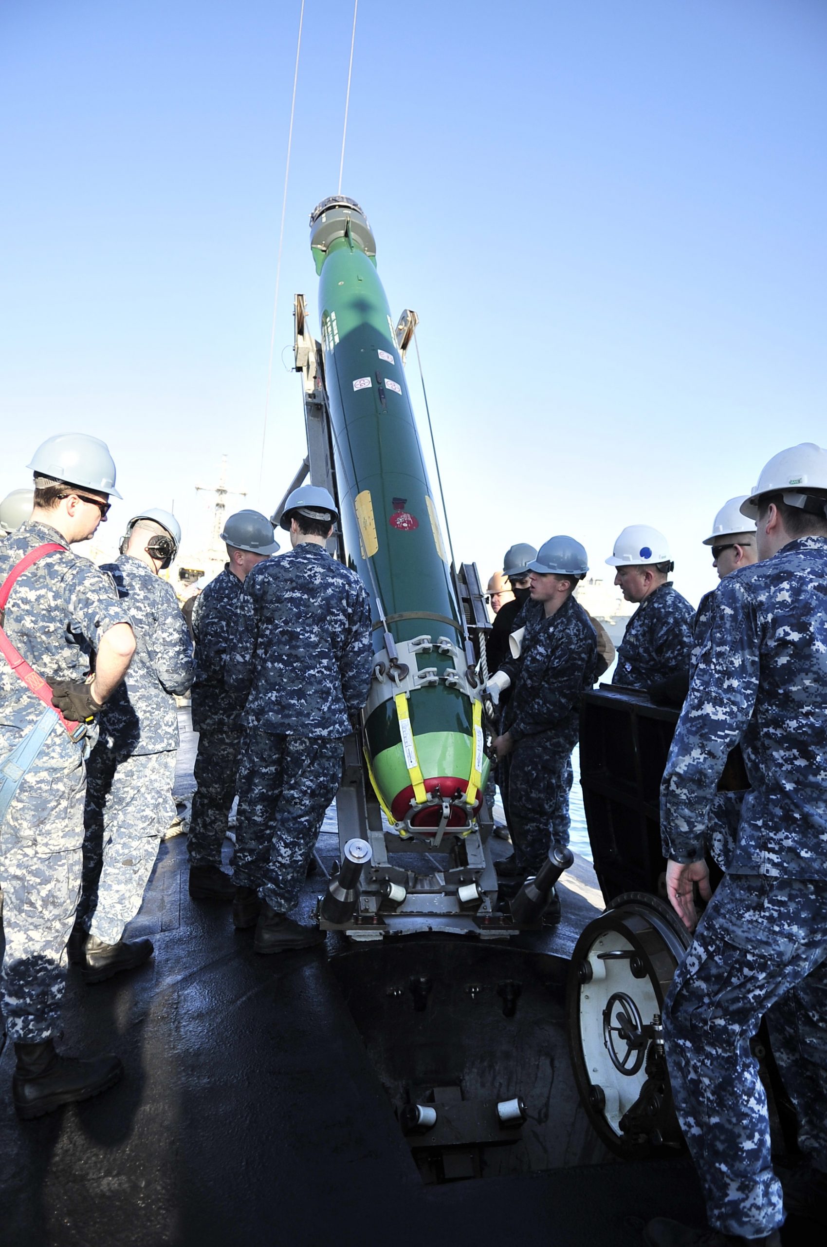 Φόρτωση στο Virginia-class USS California (SSN 781) τορπίλης MK-48(U.S. Navy Photo by Mass Communication Specialist 1st Class Michael C. Barton/Released)