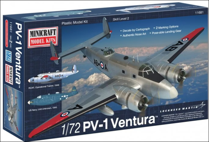 - Academy/Minicraft (Κορέα): 1987, κιτ Νο. 1614 (αλλά και FA050), Lockheed PV-1 Ventura / 1988, κιτ Νο. 1677, Early Version Vega PV-1 Ventura / 1988, κιτ Νο. 1678, PV-1 Gun Ship / 1991, κιτ Νο. 2105, Royal Air Force Ventura II