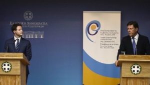 Στις κοινές δηλώσεις στο υπουργείο Εξωτερικών, ο κ. Βαρβιτσιώτης επισήμανε πως «πέρα από τους δεσμούς που μας συνδέουν στο ευρωπαϊκό οικοδόμημα, είναι πολύ σημαντικό ότι μοιραζόμαστε τις ίδιες ανησυχίες για την ευρύτερη περιοχή, για την περιοχή της Νοτιοανατολικής Ευρώπης, για την περιοχή της Ανατολικής Μεσογείου, αλλά και σε μια σειρά από θέματα που άπτονται διεθνών εξελίξεων».