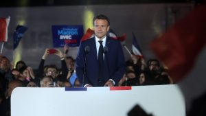 Μιλώντας στο συγκεντρωμένο πλήθος ο Μακρόν αφού ευχαρίστησε επανειλημμένα όσους εργάστηκαν για την επανεκλογή του δήλωσε πως γνωρίζει καλά ότι πολλοί που τον ψήφισαν σήμερα το έκαναν για να φράξουν το δρόμο στην ακροδεξιά.