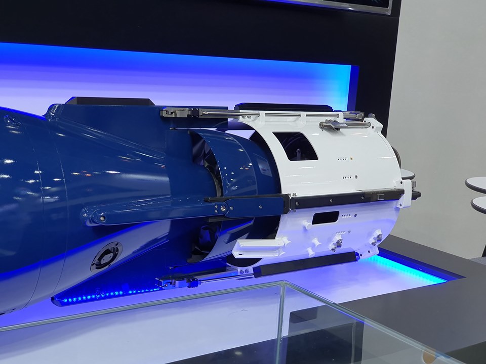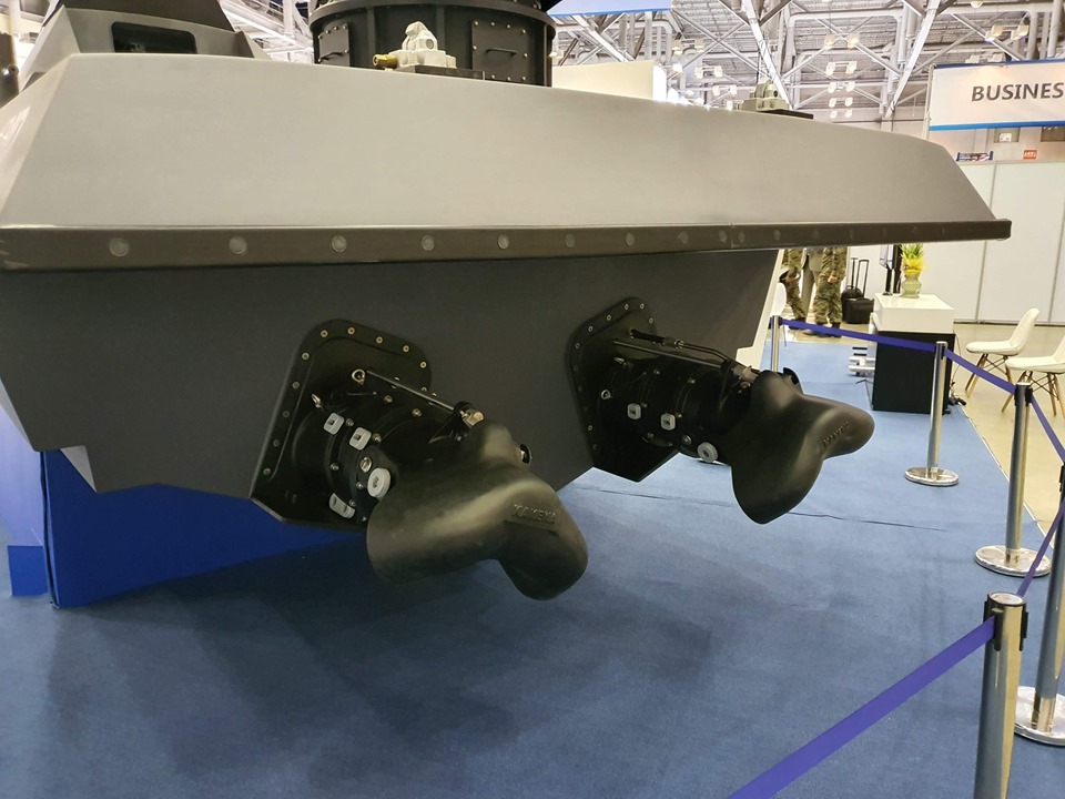 Το νέο μη επανδρωμένο όχημα επιφάνειας Sea Sword-II της LIG Nex1. Διακρίνεται μέρος το οπλισμού του και το προωστήριο σκεύος του.