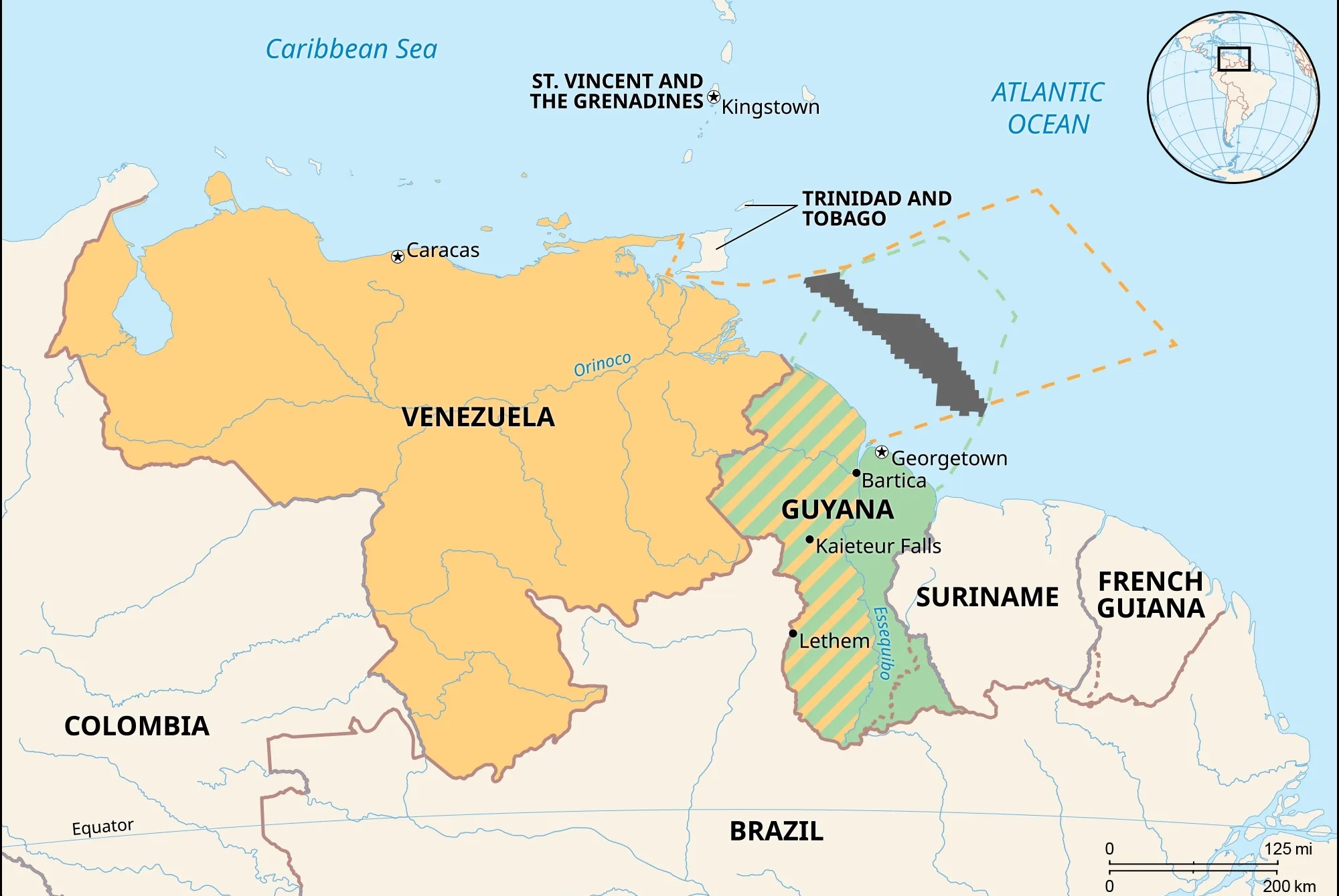 Έτσι η περιοχή του Essequibo είναι μια από τις παλαιότερες αμφισβητούμενες ζώνες στον πλανήτη, και αποτελεί -και εδώ είναι το παράδοξο- τα 2/3 της έκτασης της ίδιας της Γουϊάνας. Οπότε η διεκδίκηση της Βενεζουέλας, άν γίνει αποδεκτή, σημαίνει πως η Γουϊάνα θα “μικρύνει” δραματικά ως κράτος.