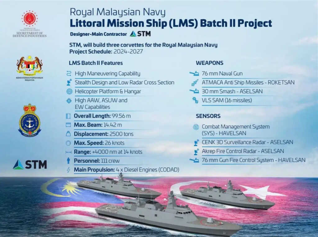 Μια ακόμα -αναμενόμενη- εξαγωγή κατέγραψε η τουρκική αμυντική βιομηχανία στις 22 Απριλίου 2026, στο περιθώριο της διεθνούς έκθεσης DSA 2026 στην Kuala Lumpur. Όπου η Roketsan υπέγραψε σύμβαση με το Υπουργείο Άμυνας της Μαλαισίας για την προμήθεια κατευθυνόμενων βλημάτων επιφανείας-επιφανείας Atmaca, τα οποία θα εξοπλίσουν τα νέα πλοία του εγχώριου προγράμματος Littoral Mission Ship (LMS) Batch 2.