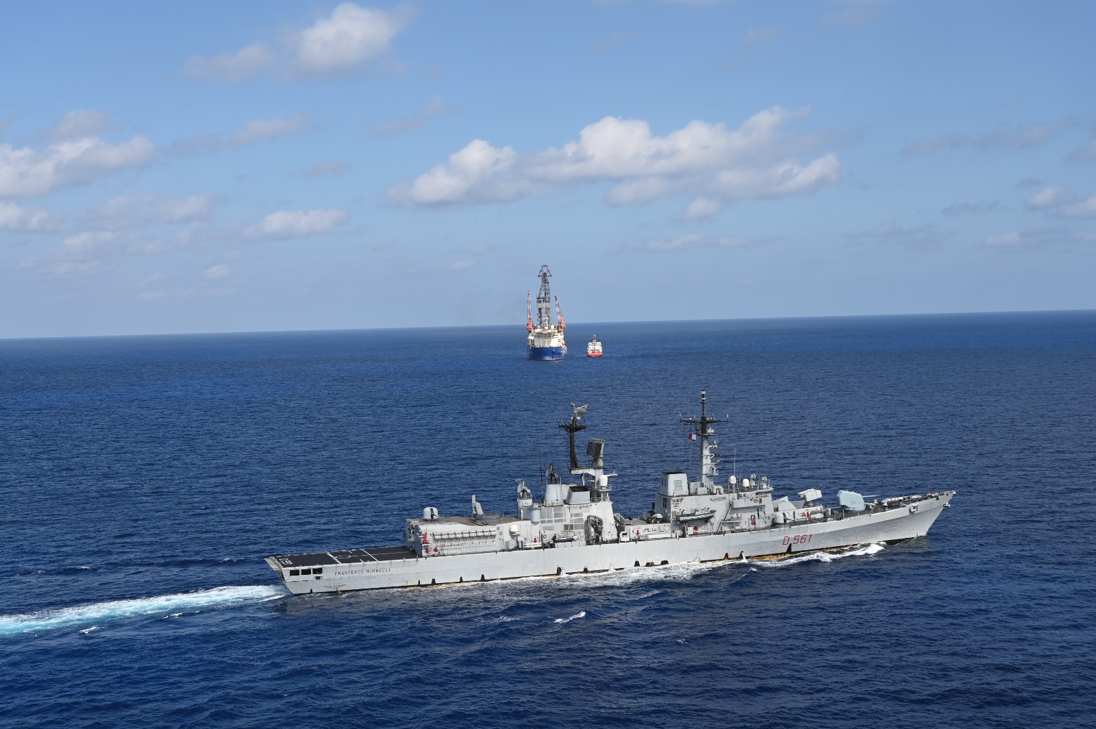 Το Ιταλικό Ναυτικό έδωσε στη δημοσιότητα μερικές -πολύ καθαρές και σαφείς- φωτογραφίες από τη δράση του γύρω από το πλοίο της ιταλικής εταιρίας πετρελαίων ΕΝΙ που κάνει έρευνες στην κυπριακή ΑΟΖ.