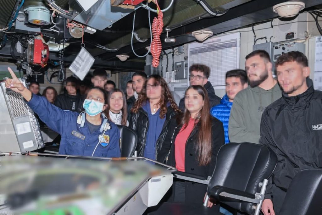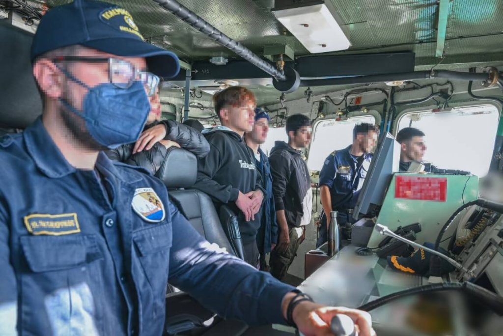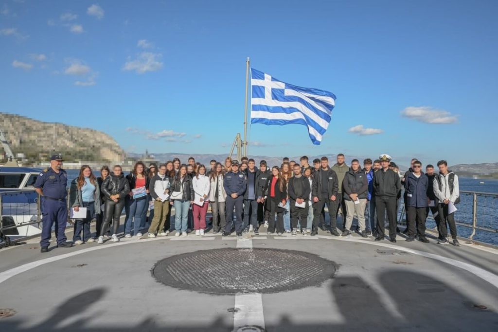 Εν συνεχεία, οι μαθητές επιβιβάστηκαν στη φρεγάτα και κατά τη διάρκεια του πλου ενημερώθηκαν για τις επιχειρησιακές δυνατότητες του πλοίου.