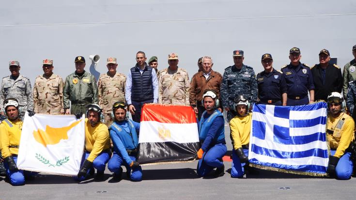 Μήνυμα ενότητας στέλνουν Κύπρος, Ελλάδα και Αίγυπτος, με την μεγάλης κλίμακας στρατιωτική άσκηση «ΜΕΔΟΥΣΑ 8», στη θαλάσσια περιοχή της Αλεξάνδρειας, στην παρουσία των Υπουργών Αμύνης των τριών χωρών.