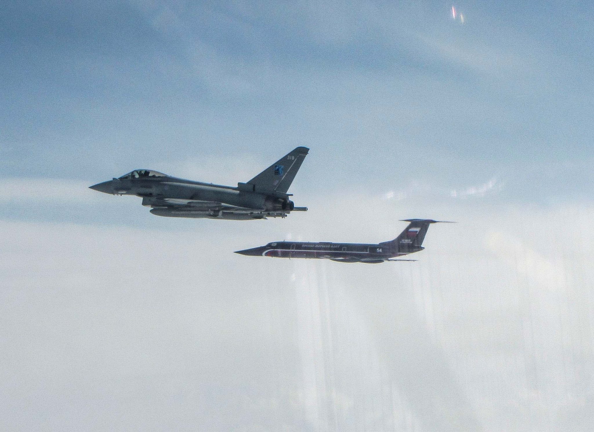 Φωτογραφίες που αποδέσμευσε το υπουργείο Άμυνας του Ηνωμένου Βασιλείου με πρόσφατες αναγνωρίσεις-αναχαιτίσεις ρωσικών αεροσκαφών από το κλιμάκιο των Typhoon της RAF που υλοποιούν αποστολή BAP (Baltic Air Policing) στη βάση Amari.