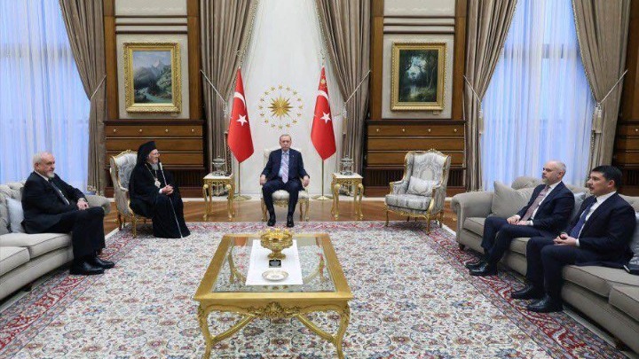 Ο Οικουμενικός Πατριάρχης Βαρθολομαίος, κατόπιν αιτήσεώς του, συναντήθηκε σήμερα, 26 Δεκεμβρίου, με τον πρόεδρο της Τουρκίας, Ρετζέπ Ταγίπ Ερντογάν, στο Προεδρικό Μέγαρο της Άγκυρας.