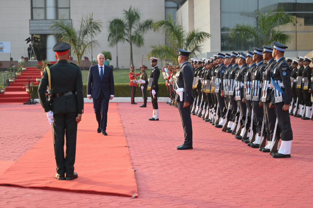 «Μόλις ολοκληρώθηκε η επίσκεψη μου στην Ινδία. Είχα την ευκαιρία, καταρχάς, να συναντήσω τον Υπουργό Εξωτερικών, τον Σουμπραχμανιάμ Τζαϊσάνκαρ (Subrahmanyam Jaishankar) και να επισκεφθώ μετά μια σειρά από Βάσεις, αλλά και εταιρείες και το οικοσύστημα καινοτομίας της μεγάλης αυτής χώρας. Να έρθω σε επαφή με τον τρόπο που σκέφτονται, με το τρόπο που αναπτύσσουν και μεταρρυθμίζουν τις Ένοπλες Δυνάμεις τους. Και τελικά σήμερα, πέρα από την κατάθεση στεφάνου στον Άγνωστο Στρατιώτη, να συναντήσω τον Υπουργό Άμυνας Ινδίας κ. Singh, με τον οποίο είχαμε μια βαθιά και ειλικρινή ανταλλαγή απόψεων.