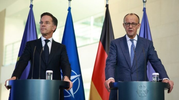 Ο Μαρκ Ρούτε από την πλευρά του εξήρε τον ηγετικό ρόλο της Γερμανίας στη Συμμαχία και την απόφαση του Βερολίνου να επιτύχει τον νέο ΝΑΤΟϊκό στόχο για δαπάνες 3,5% στην άμυνα και επιπλέον 1,5% σε πολιτικές για την ασφάλεια έως το 2029, έξι χρόνια πριν από την ημερομηνία – ορόσημο. Εξέφρασε επίσης την πεποίθηση ότι το ΝΑΤΟ θα παραμείνει ενωμένο.