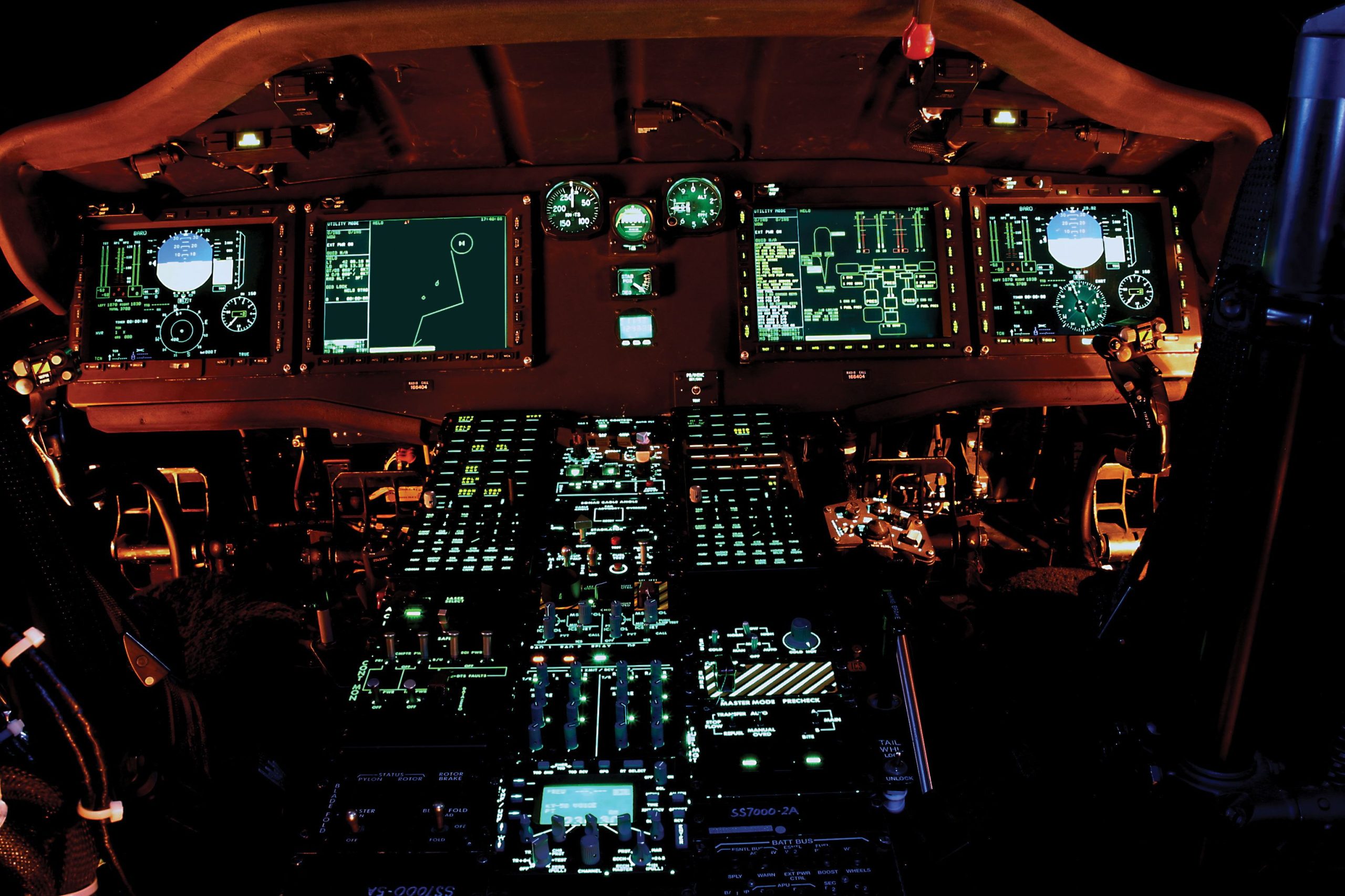 Συγκριτική απεικόνιση του Common Cockpit του MH-60R (κάτω) και του αναλογικού πιλοτηρίου των S-70B πρώτης γενιάς (επάνω), στα οποία ανήκουν και τα Aegeanhawk. (US Navy, Αρχείο Π&Δ)