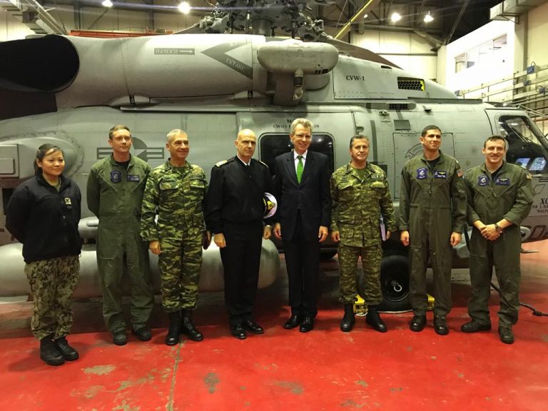 Impressive visit to Marathon to greet our great US sailors & to see demonstration of @USNavyEurope MH60R Seahawk helicopter visiting from the @USSHARRYSTRUMAN Strike Group, currently in the Mediterranean. Thanks @Hellenic_MOD, MG Flaris for hosting. #Greece #pillarofstability pic.twitter.com/hI3dF65rQP